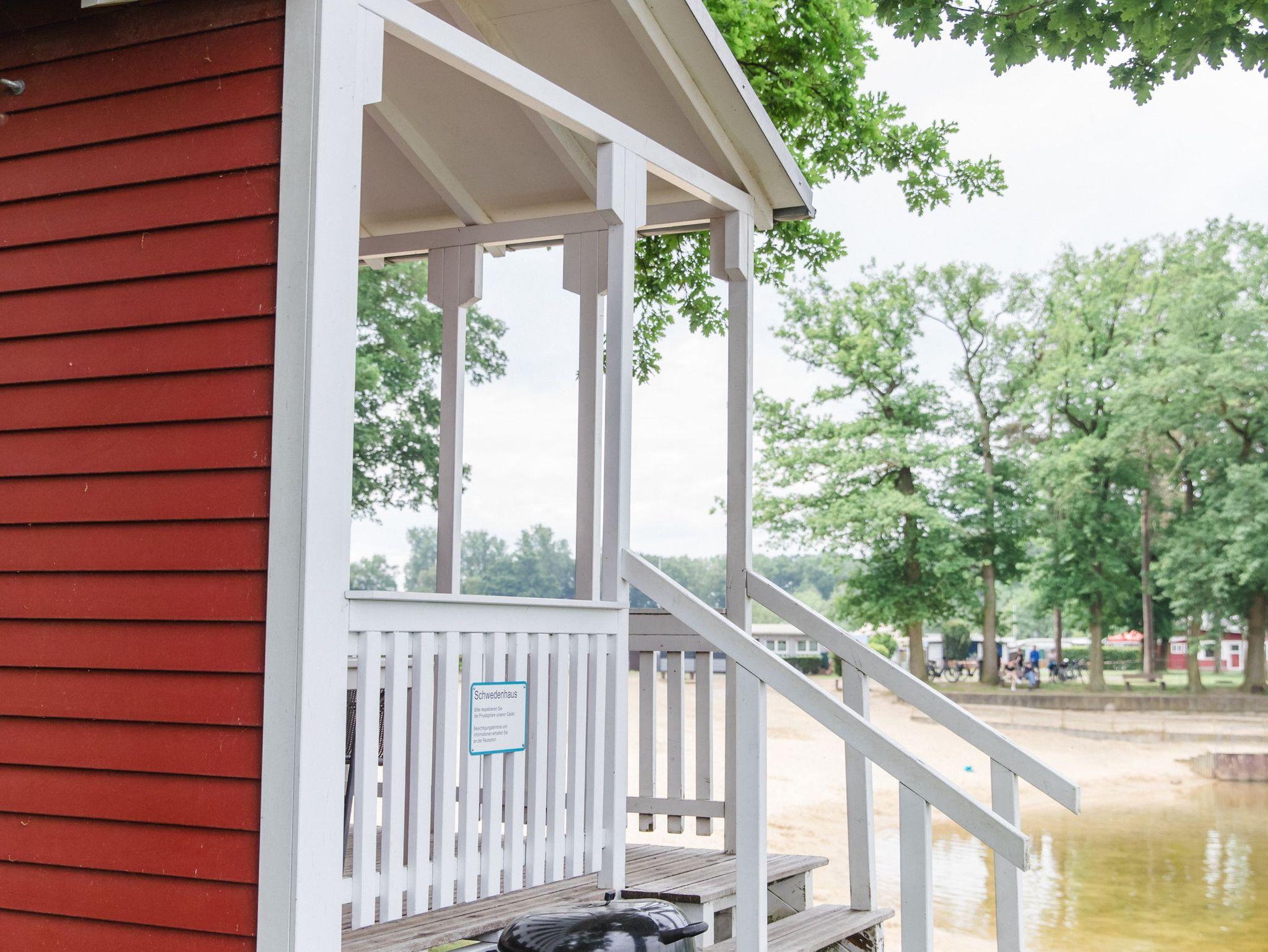 Unser Schwedenhaus steht an einer ganz besonders schönen Stelle des Platzes, gleich neben dem Sandstrand und mit direktem Blick auf den Ternscher See.