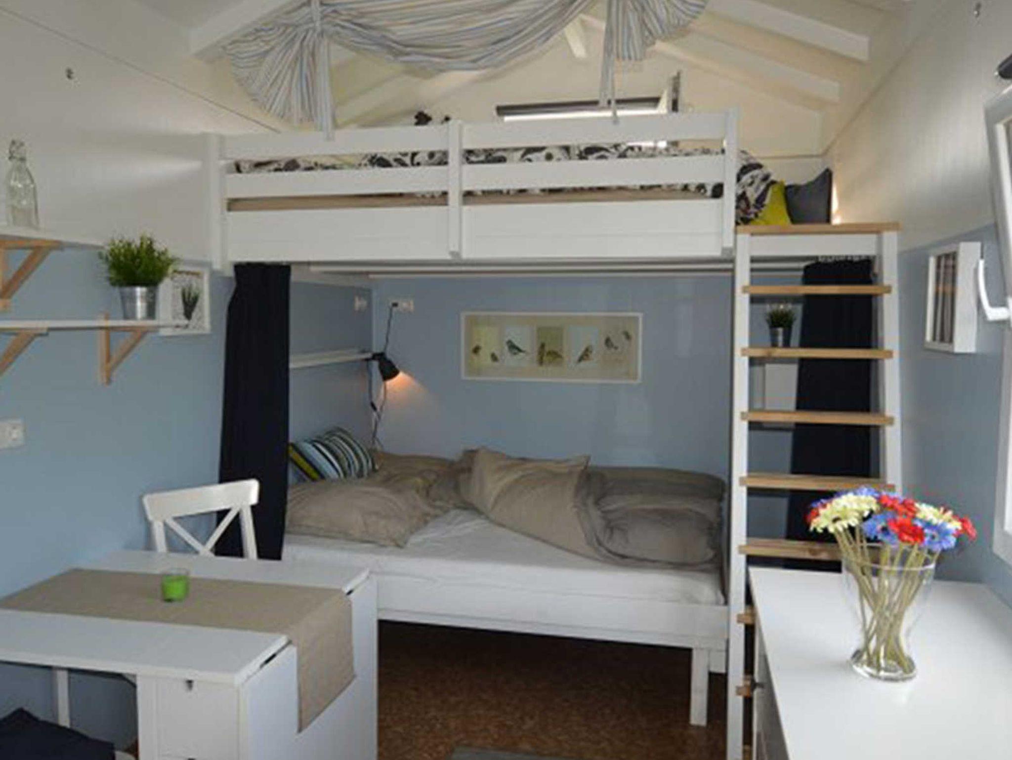 Das erhöhte Schlafdeck im Innenbereich bietet eine optimale Wohnraumnutzung: