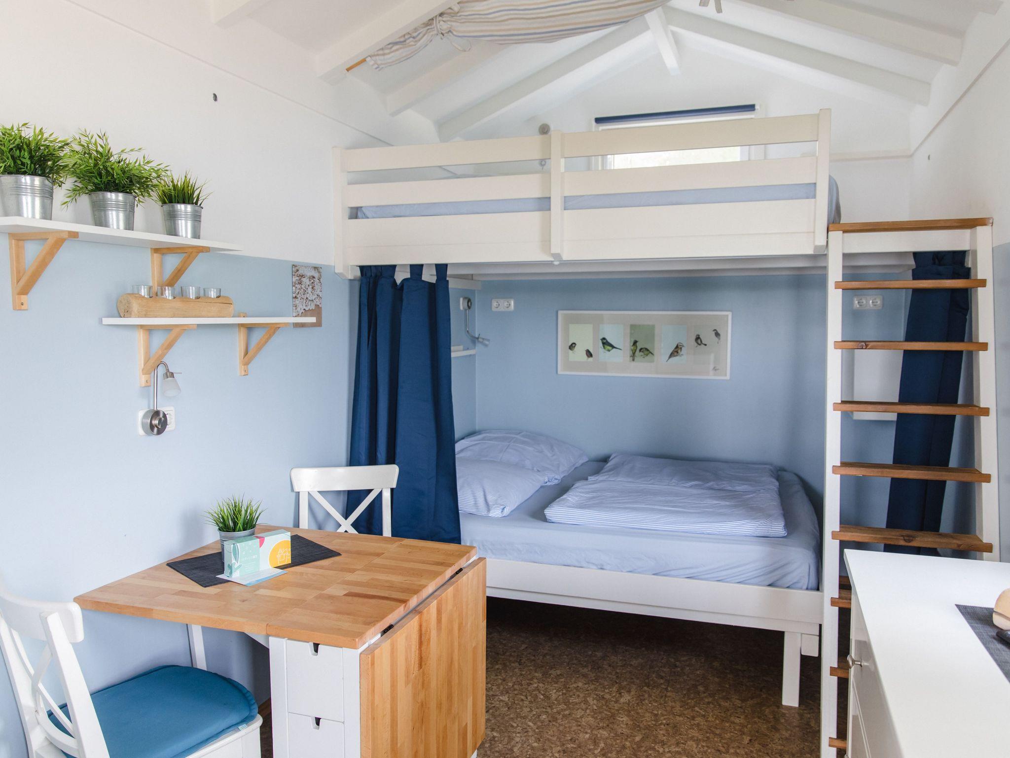 - Zwei Betten auf zwei Etagen mit 1,60 m x 2,00 m Matratzen, Bettwäschen und Kopfkissen werden kostenpflichtig zur Verfügung gestellt. Handtücher sind selber mitzubringen.