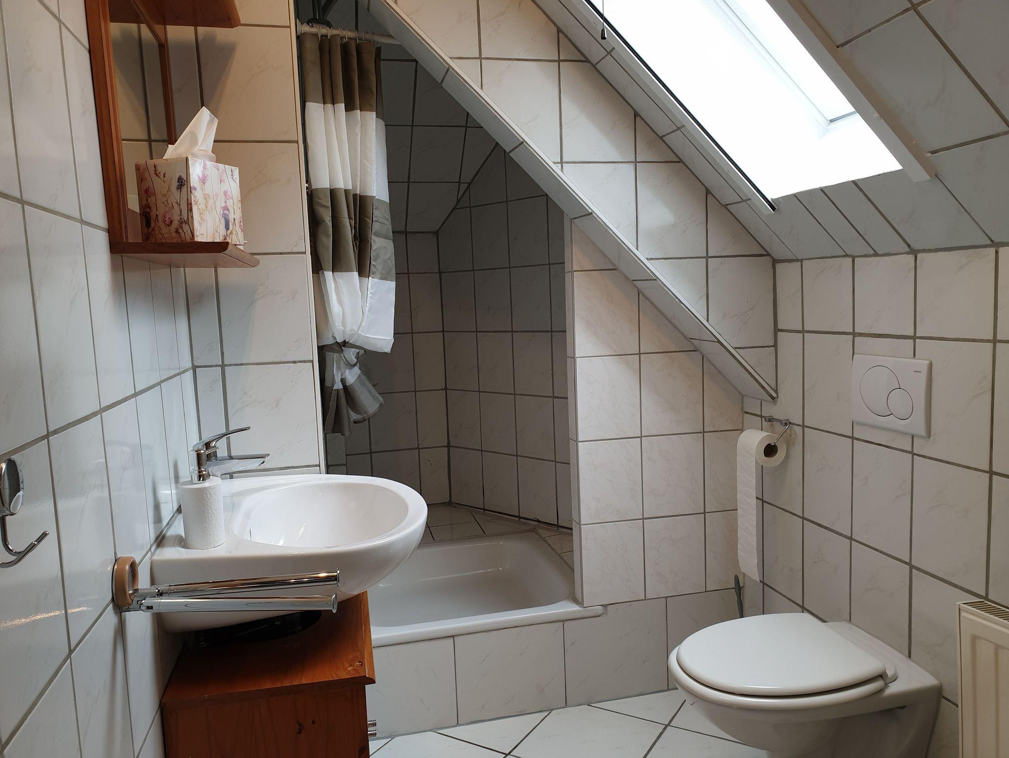 Das Zweibettzimmer liegt im Dachgeschoss und ist ausgestattet mit DU/WC, TV, Wlan