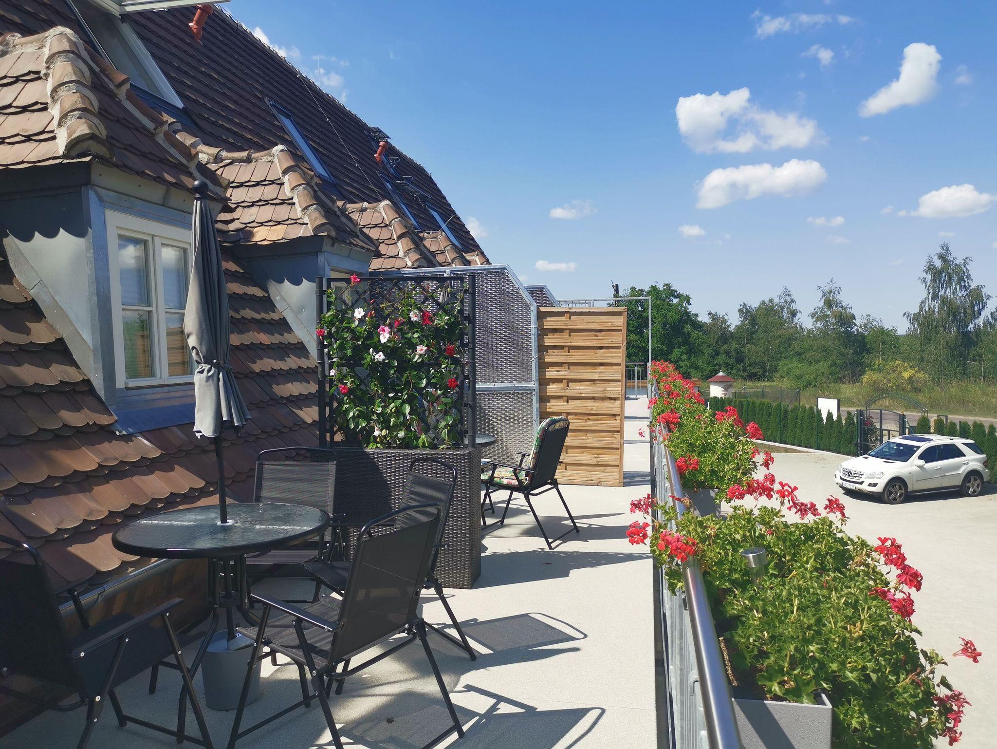 • Im Aussenbereich finden die Gäste einen Spielplatz, Sitzmöglichenkeiten zum Erholen und Entspannen und Fahrradunterstellmöglichkeiten, eine Gemeinschaftsküche, ein Aufenthaltsraum sowie eine barrierefreie Dusche und WC sind vorhanden. Im Hauptgebäude befinden sich sechs Zimmer. Die Zimmer haben einen direkten Zugang über eine Treppe im Innenbereich des Gebäudes. Jedes Zimmer hat ein eigenes Bad mit DU/WC, direkt gegenüberliegend. Im Objekt gibt es eine Gemeinschaftssauna (buchbar vor Ort gegen Aufpreis). Bei Zimmer sieben ist das Bad über eine Außentreppe erreichbar.
