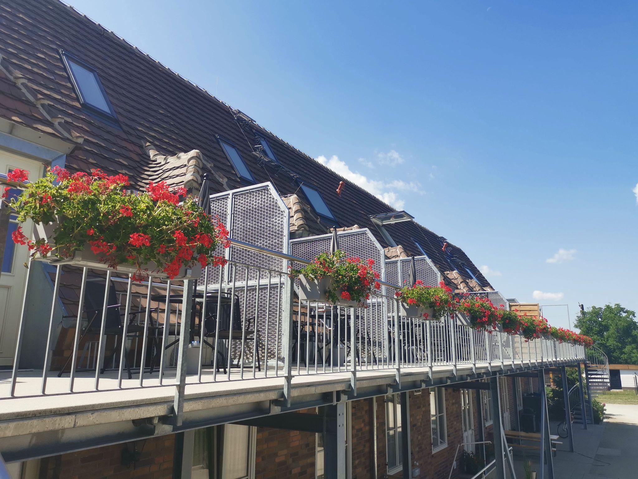 • Im Aussenbereich finden die Gäste einen Spielplatz, Sitzmöglichenkeiten zum Erholen und Entspannen und Fahrradunterstellmöglichkeiten, eine Gemeinschaftsküche, ein Aufenthaltsraum sowie eine barrierefreie Dusche und WC sind vorhanden. Im Hauptgebäude befinden sich sechs Zimmer. Die Zimmer haben einen direkten Zugang über eine Treppe im Innenbereich des Gebäudes. Jedes Zimmer hat ein eigenes Bad mit DU/WC, direkt gegenüberliegend. Im Objekt gibt es eine Gemeinschaftssauna (buchbar vor Ort gegen Aufpreis). Bei Zimmer sieben ist das Bad über eine Außentreppe erreichbar.