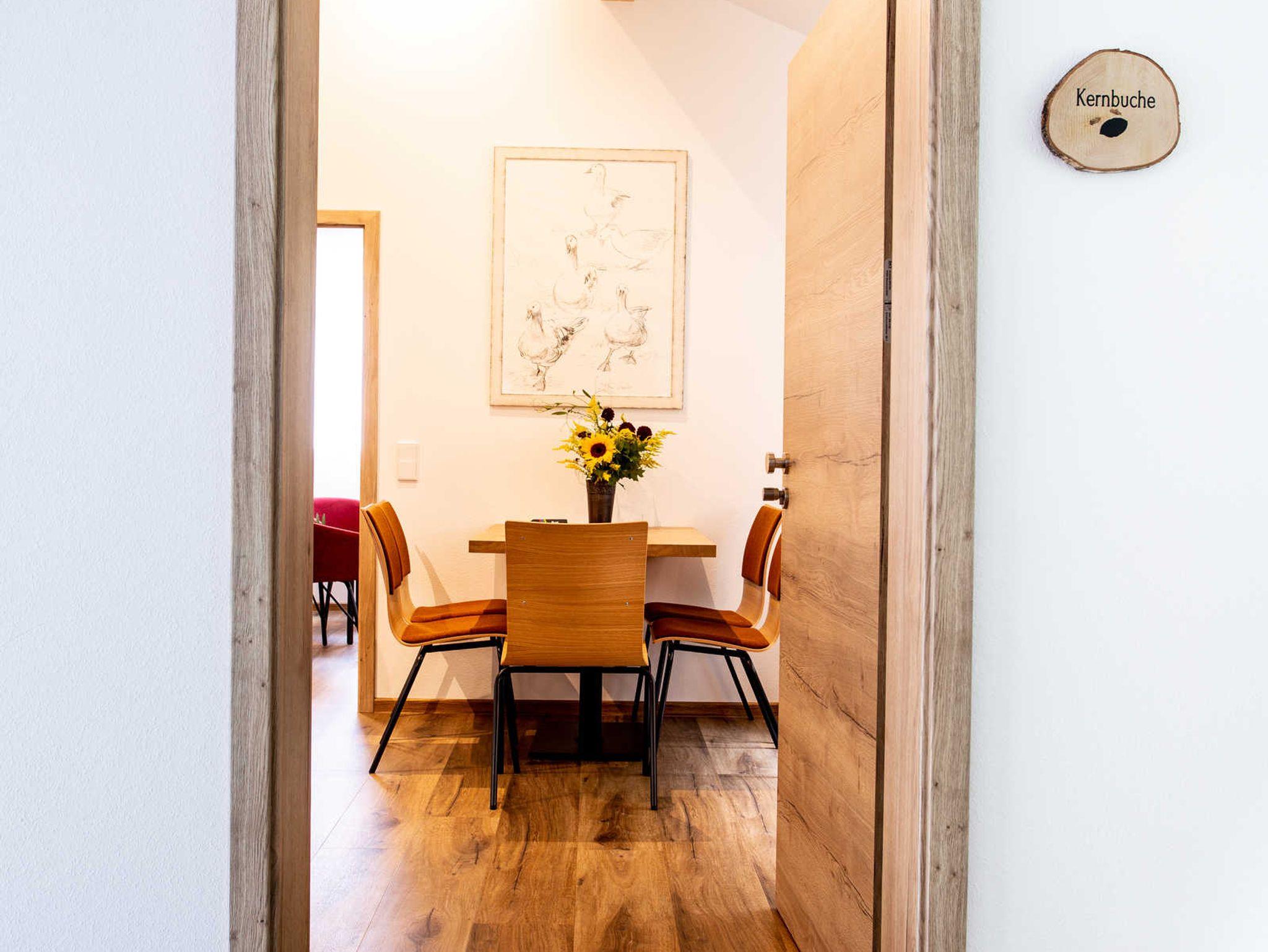 Die Kernbuche ist einer unserer schönen Wohnungen im Dachgeschoss. Sie hat zwei Schlafzimmer und eine größer ausgestattete Küche. So ist sie die perfekte Wohnung für eine Familie oder zwei Pärchen.