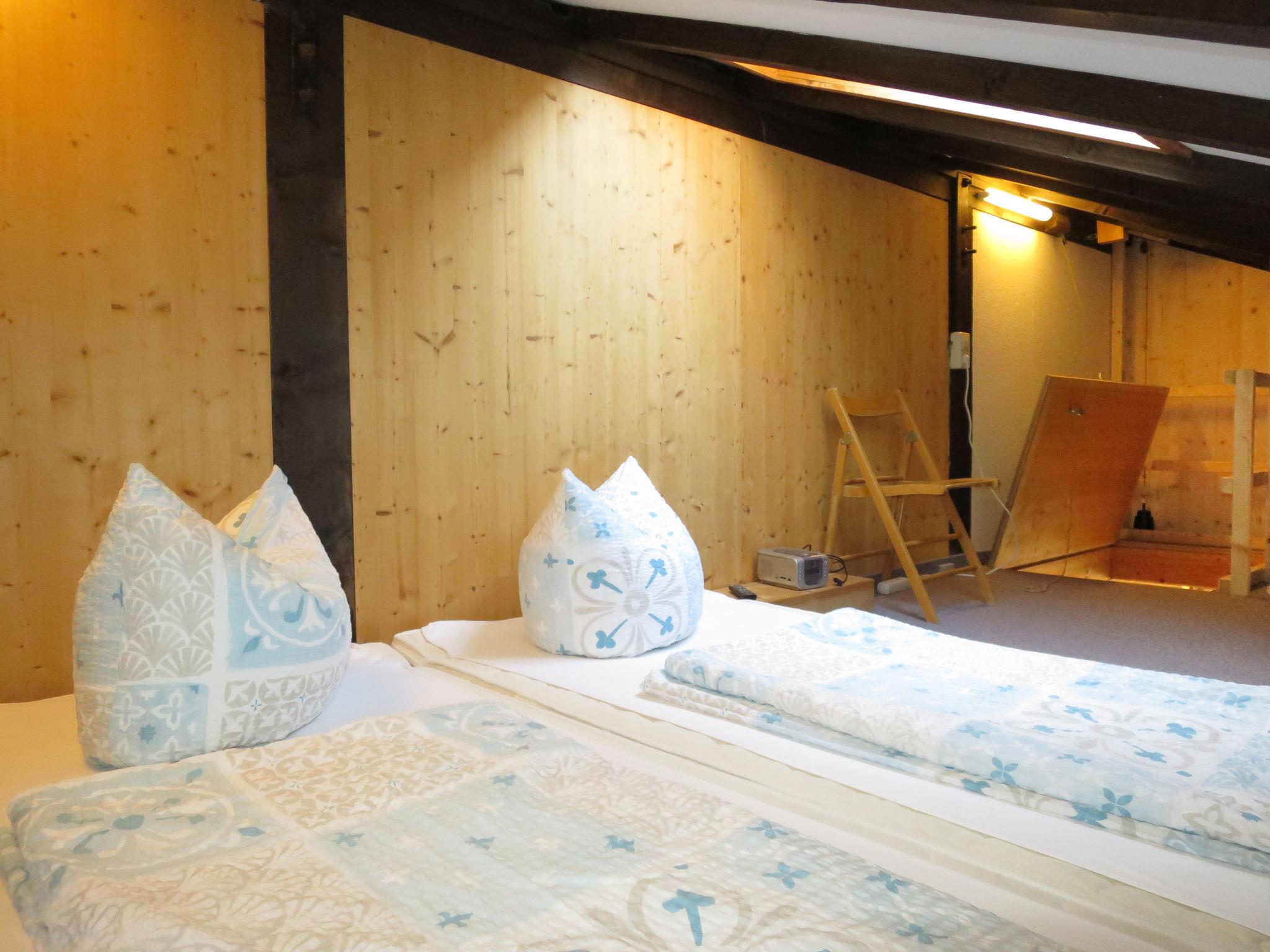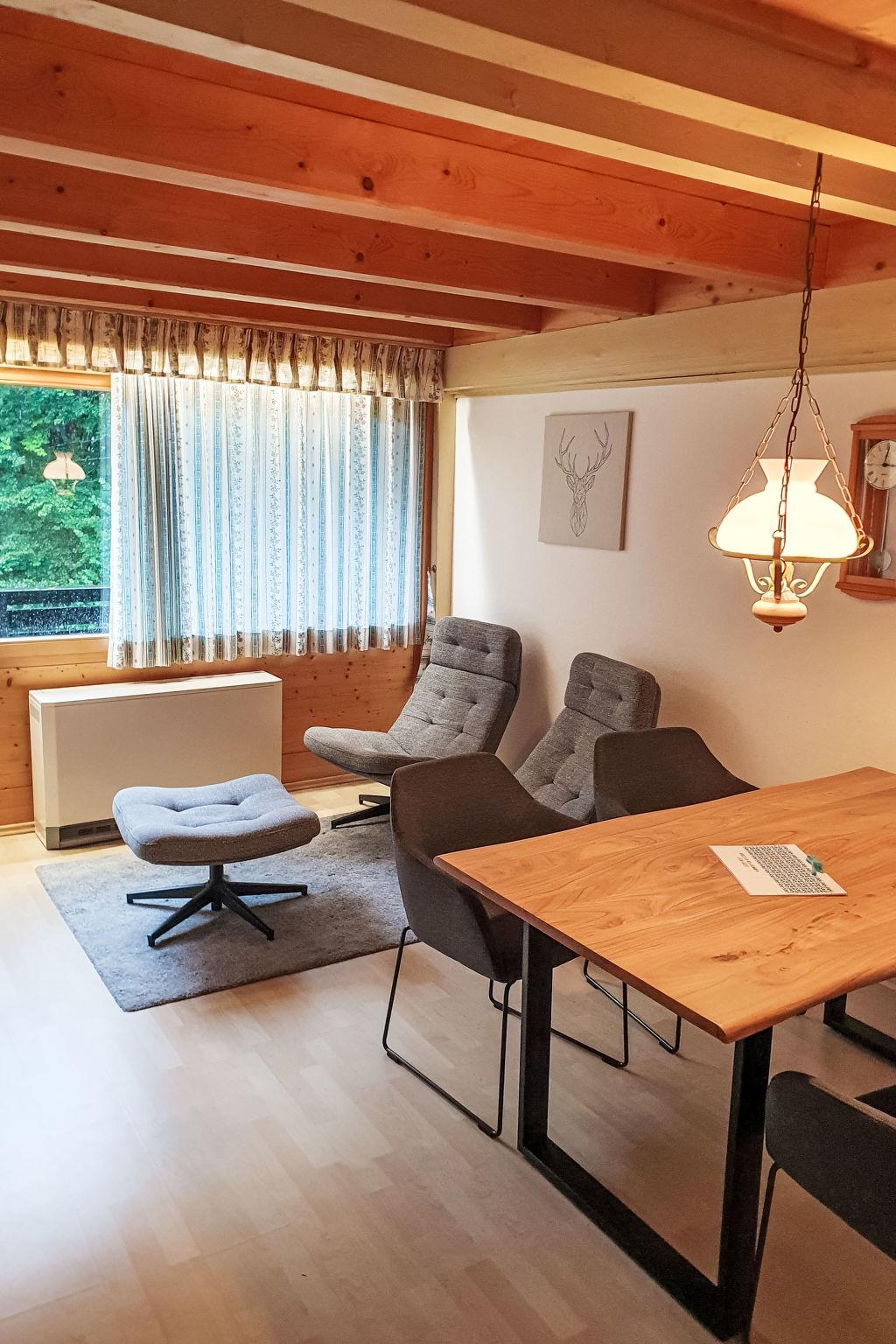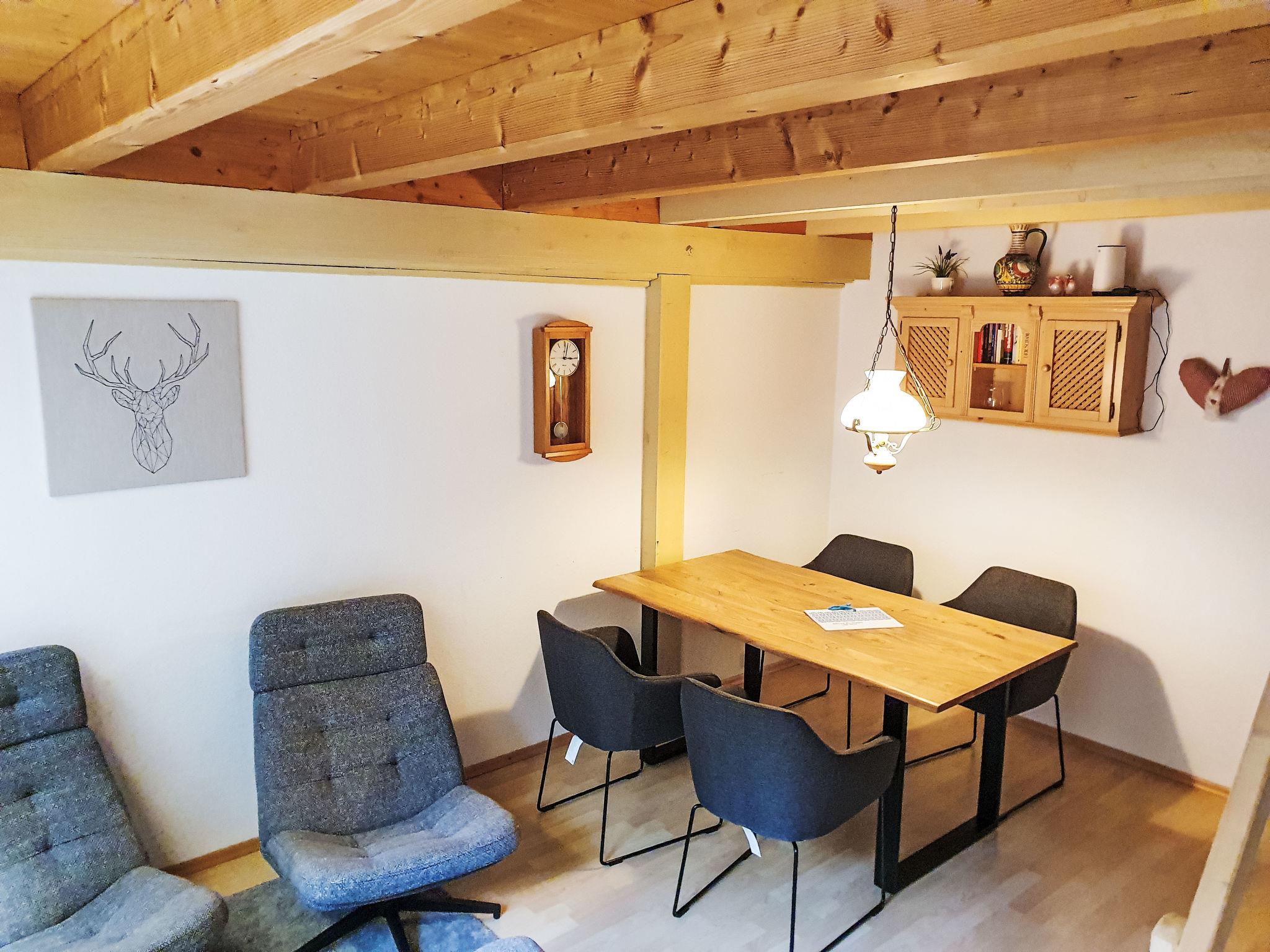 2-room apartment 45 m2 on 2 levels. Object suitable for 2 adults + 2 children. Cosy and wooden furniture furnishings: living/dining room with dining nook, satellite TV and electric heating. Exit to the balcony. Open walk-through room with 1 french bed (140 cm, length 200 cm). Kitchen (oven, dishwasher, 4 ceramic glass hob hotplates, toaster, kettle, electric coffee machine). Shower/WC. Upper floor: with sloping ceilings, 1 small children's room, ceiling height 10 - 150 cm with rooflight, without wardrobe with 2 sleeping facilities. Wooden floors. Balcony. Balcony furniture. Parking. Please note: non-smokers only. Smoke alarm. Maximum occupancy: 2 adults and 2 children. Bookings accepted for holiday purposes only.