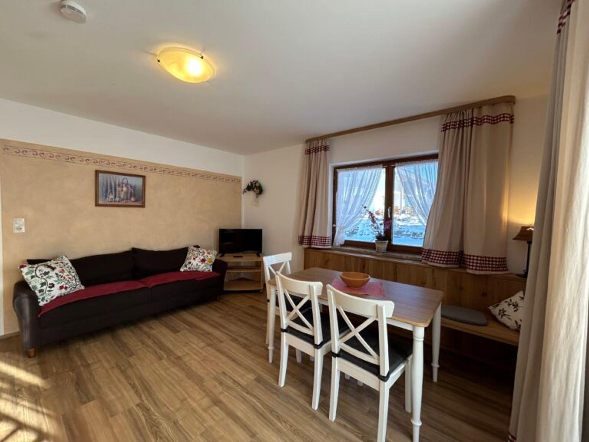 Die ländliche Wohnung im Erdgeschoss eignet sich aufgrund der Lage und Größe (60 qm) gut für Familien oder gehbehinderte Personen. Sie besteht aus zwei separaten Schlafzimmern (ein Schlafzimmer mit Tür zur Terrasse), einer Wohnküche mit direktem Zugang auf die Süd-Terrasse, Sat-TV, Dusche/WC und Flur. Ein Zustellbett für Kinder ist möglich.