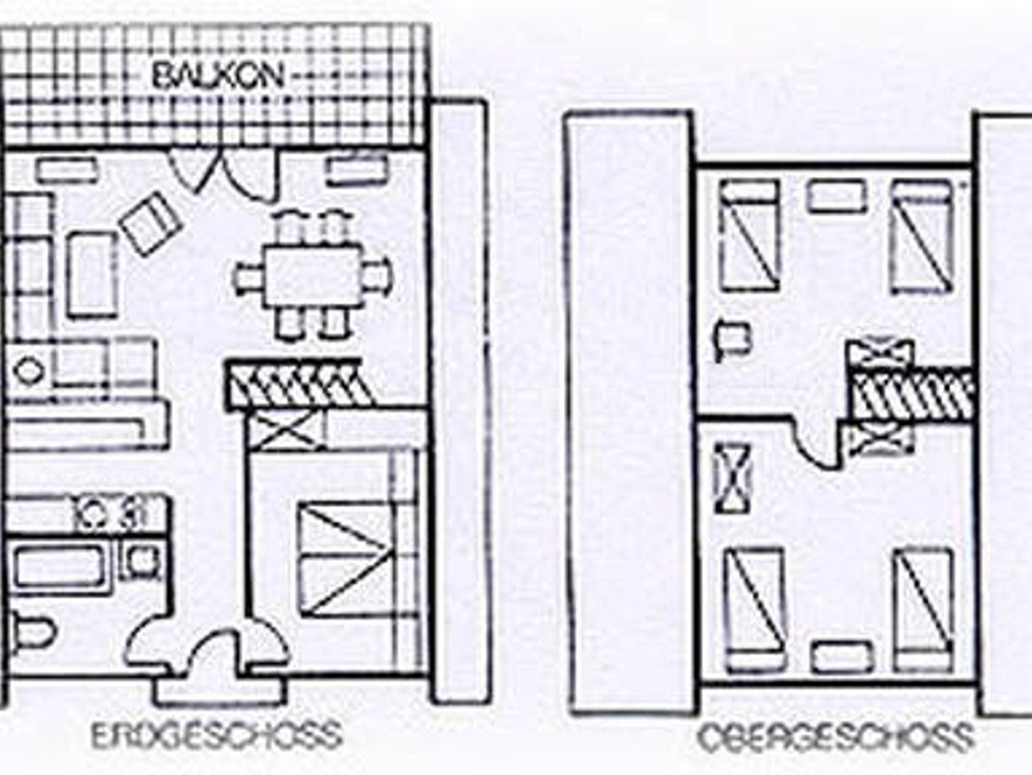 Im Dachgeschoss befinden sich zwei Schlafzimmer mit je zwei Betten.