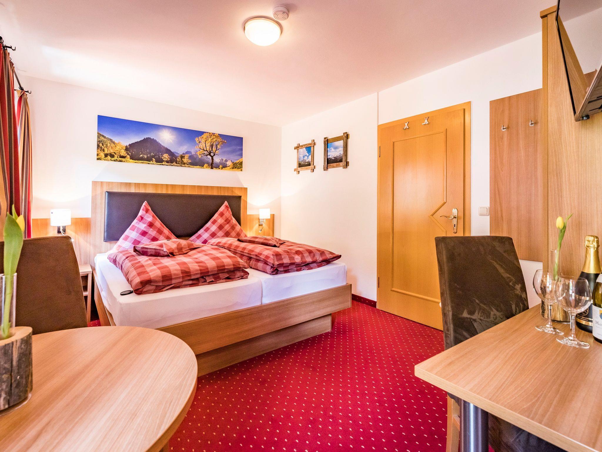 Unser neu eingerichtetes Wohlfühlzimmer ist gemütlich und komfortabel und lädt zu unbeschwerten Urlaubstagen ein. Das Zimmer mit 13 m² Grundfläche ist mit einem Doppelbett, Sitzplätze für 2 Personen, Schreibtisch, 24 Zoll Flachbildschirm, Kleiderschrank, Garderobe, Wandspiegel, Rundtisch ausgestattet. Das helle Badezimmer mit 4 m² Grundfläche ist mit einer großen Eckdusche, WC/Waschbecken, Kosmetikspiegel ausgestattet. Bevor Sie den Urlaubstag starten, begeben Sie sich an unser köstliches Frühstücksbuffet. Durch die zentrale Lage ist unser Haus auch der ideale Ausgangspunkt für schöne Wanderungen und Mountainbike Touren. Eine Sonnenterrasse, ein gemütlicher Aufenthaltsraum, sowie die kleinen Dinge, die den Urlaub perfekt machen, erwarten Sie bei uns.