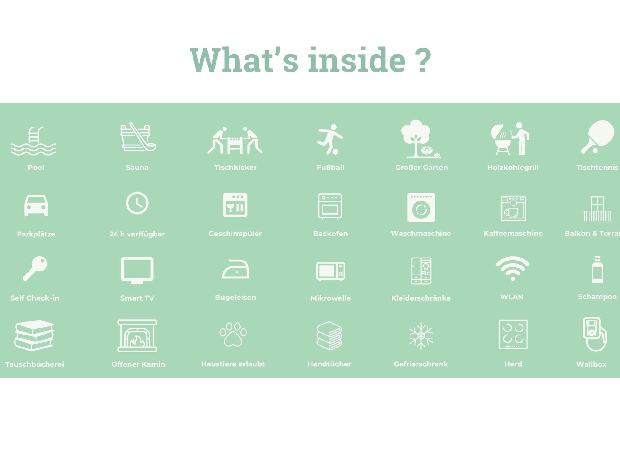 Tischtennisplatte oder ein Tischkicker sorgen für zusätzliche Unterhaltung, den Abend können Sie gemütlich vor dem offenen Kamin oder mit einem packenden Film mit Heimkino-Sound ausklingen lassen.