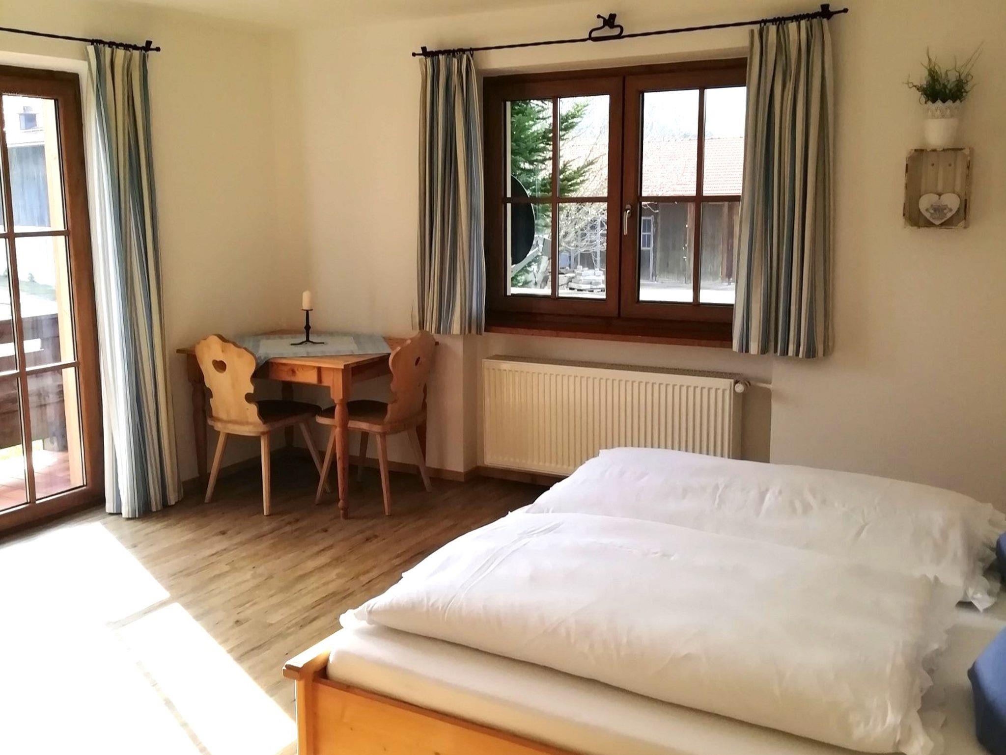 Herzlich Willkommen in unserer komplett eingerichteten, mit 100qm sehr geräumigen Ferienwohnung inklusive Bettwäsche und Handtücher.Die Wohnung bietet Wohnbereich mit Flachbild-TV und Sattelitenempfang. Die vollausgestattete Küche hat Backofen, Geschirrspülmaschine, Toaster, Kühlschrank mit Tiefkühlfach, Wasserkocher, Kaffeemaschine sowie eine Essbereich. Das Badezimmer hat eine Badewanne, Dusche, Haartrockner.Die Wohnung hat zwei Schlafzimmer, das erste mit 20qm und Bett 1,80x2,00 Meter, das zweite Schlafzimmer ist 14qm groß und hat ein Bette 1,60x2,00 Meter.Vom Balkon der Wohnung kann man dank der ruhigen Lage den Bergblick, die Sonne und den Blick in Garten und umliegende Natur in vollen Zügen genießen.Grillmöglichkeit im Garten vorhanden. Abstellraum für Ski. Urige Keller-Bar wo Sie Weihnachten/Silvester ihr Fondue oder Raclette geniessen können. Das Rauchen ist auf dem Balkon erlaubt, in der Wohnung allerdings nicht.Auch Motorradfahrer und E-Biker sind bei uns herzlich Willkommen.Neu ab Dezember 2024 Chiemgau Karte. Der Vorteil für Sie: Noch mehr Vergünstigungen was Ihren Urlaub noch Atraktiver macht.Familie Gimpl freut sich auf euch mit einem Begrüßungs Drink, und für die Kinder gibt's eine kleine Überraschung.