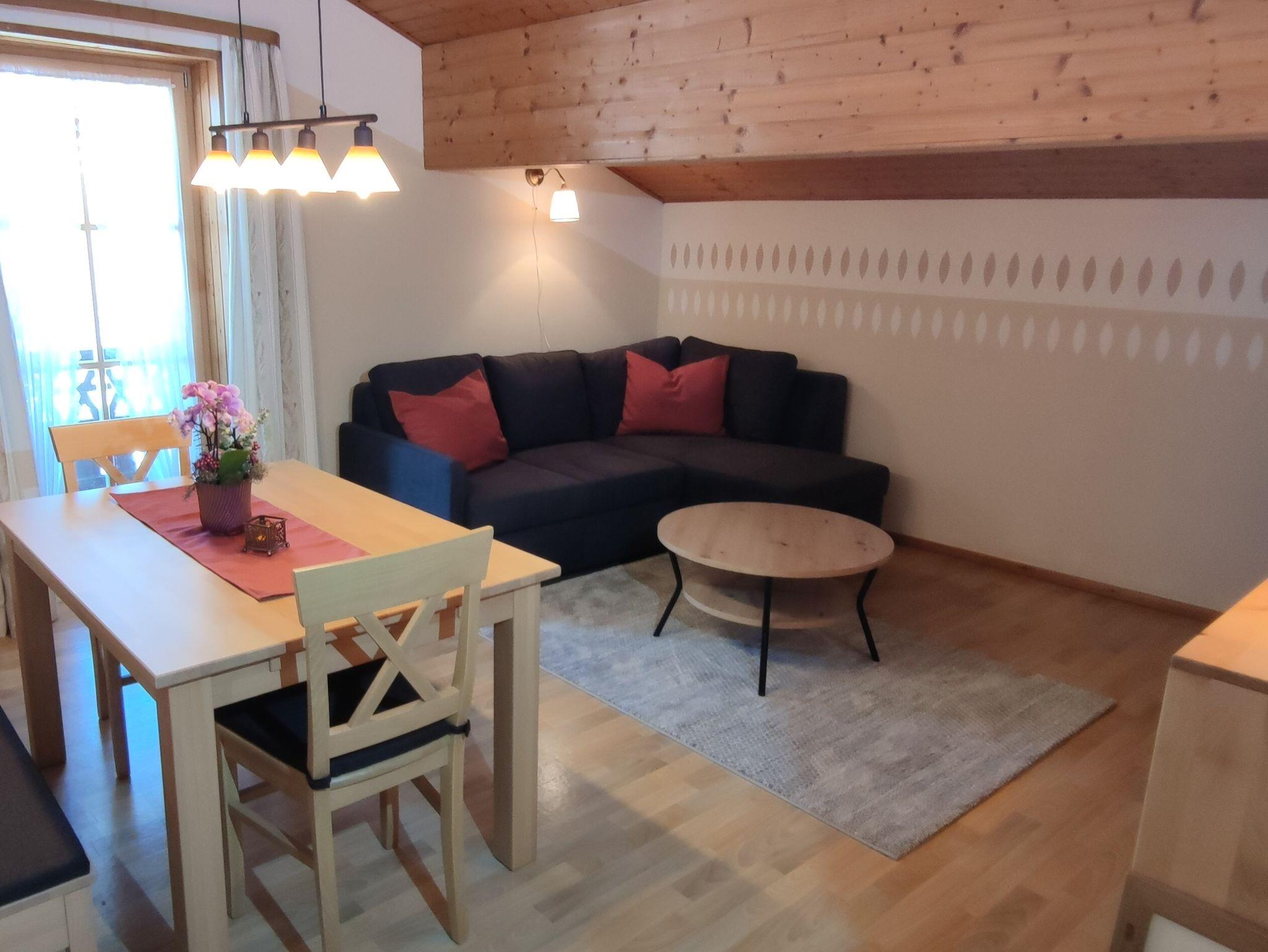 Die neu gestaltete Mansardenwohnung befindet sich im 2. Obergeschoß des Bauernhofes und hat eine Größe von ca. 60 qm. Sie verfügt über ein kombiniertes Wohn-/Esszimmer mit Schlafcouch und Flachbildfernseher, die Küchenzeile ist modern und komplett ausgestattet (inkl. Geschirrspüler und Mikrowelle). Desweiteren ist ein Schlafzimmer mit Doppelbett, eine Dusche und ein separates WC vorhanden. Vom Ost-Balkon genießen Sie die Morgensonne mit einem wunderbaren Blick auf die Chiemgauer ttwäsche und Handtücher werden gestellt. Auf Anfrage ist ein weiteres Schlafzimmer im 1. Obergeschoß für bis zu 2 weitere Personen ist zubuchbar. Haustiere sind nicht erlaubt.