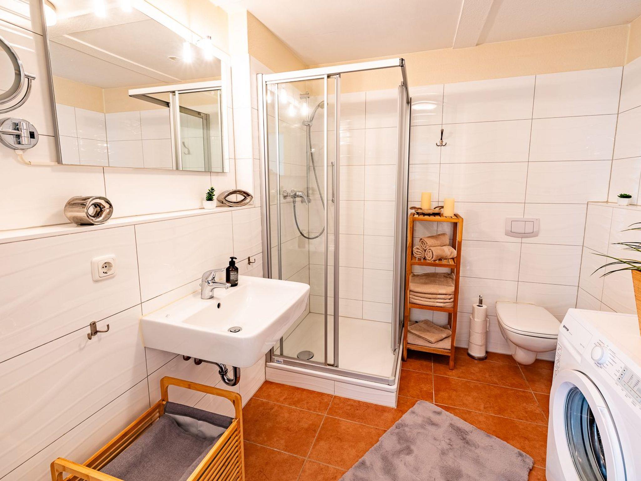 Neben dem großzügigen Eingangsbereich gibt es zwei Schlafzimmer, zwei vollausgestattete Bäder (davon ein Bad mit Waschmaschine) und einen gemütlichen Wohn-Essbereich, der im Winter 2023/24 neu möbliert wurde.