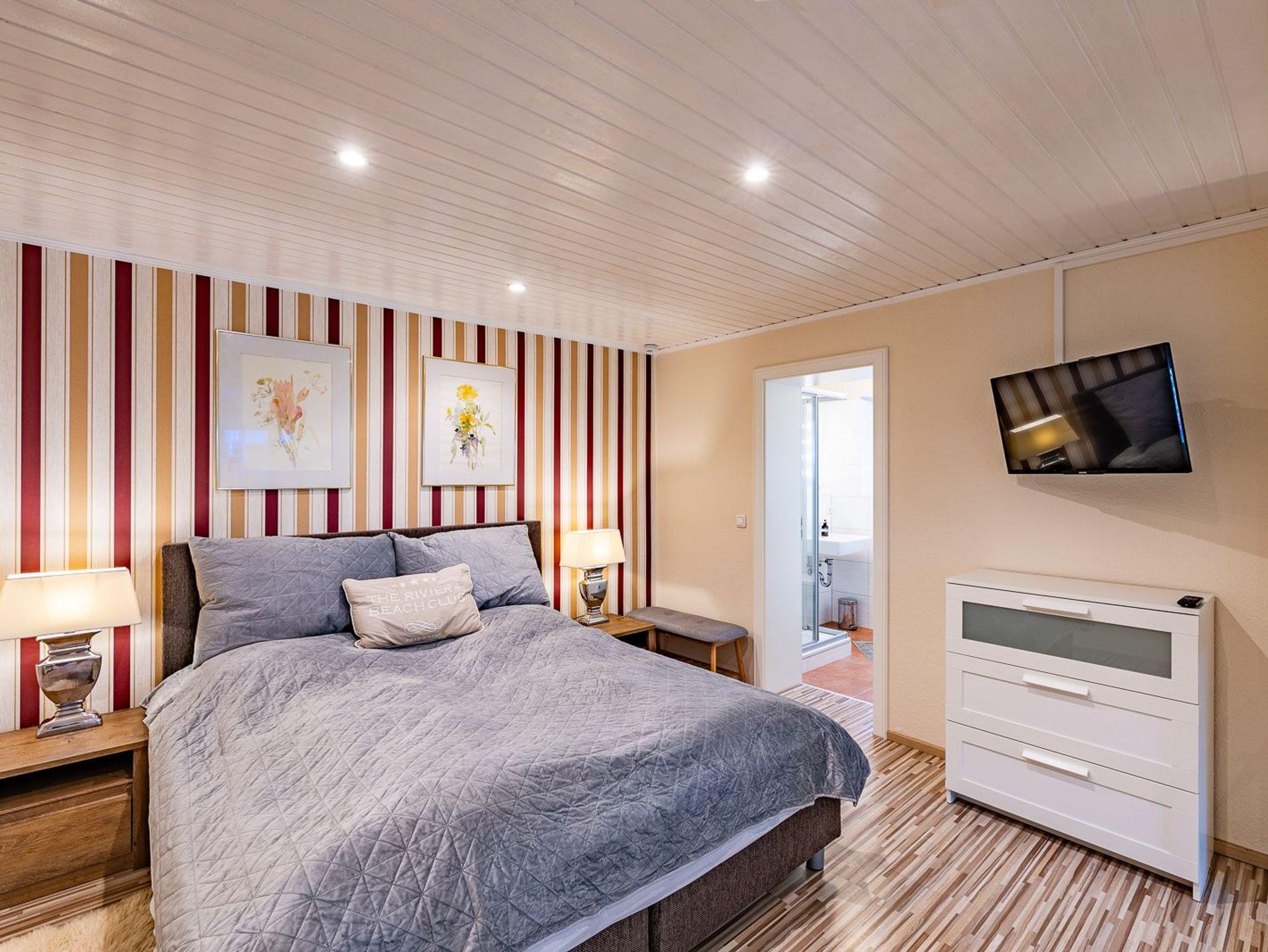 Für einen erholsamen Schlaf warten in beiden Schlafzimmern hochwertige Boxspringbetten.
