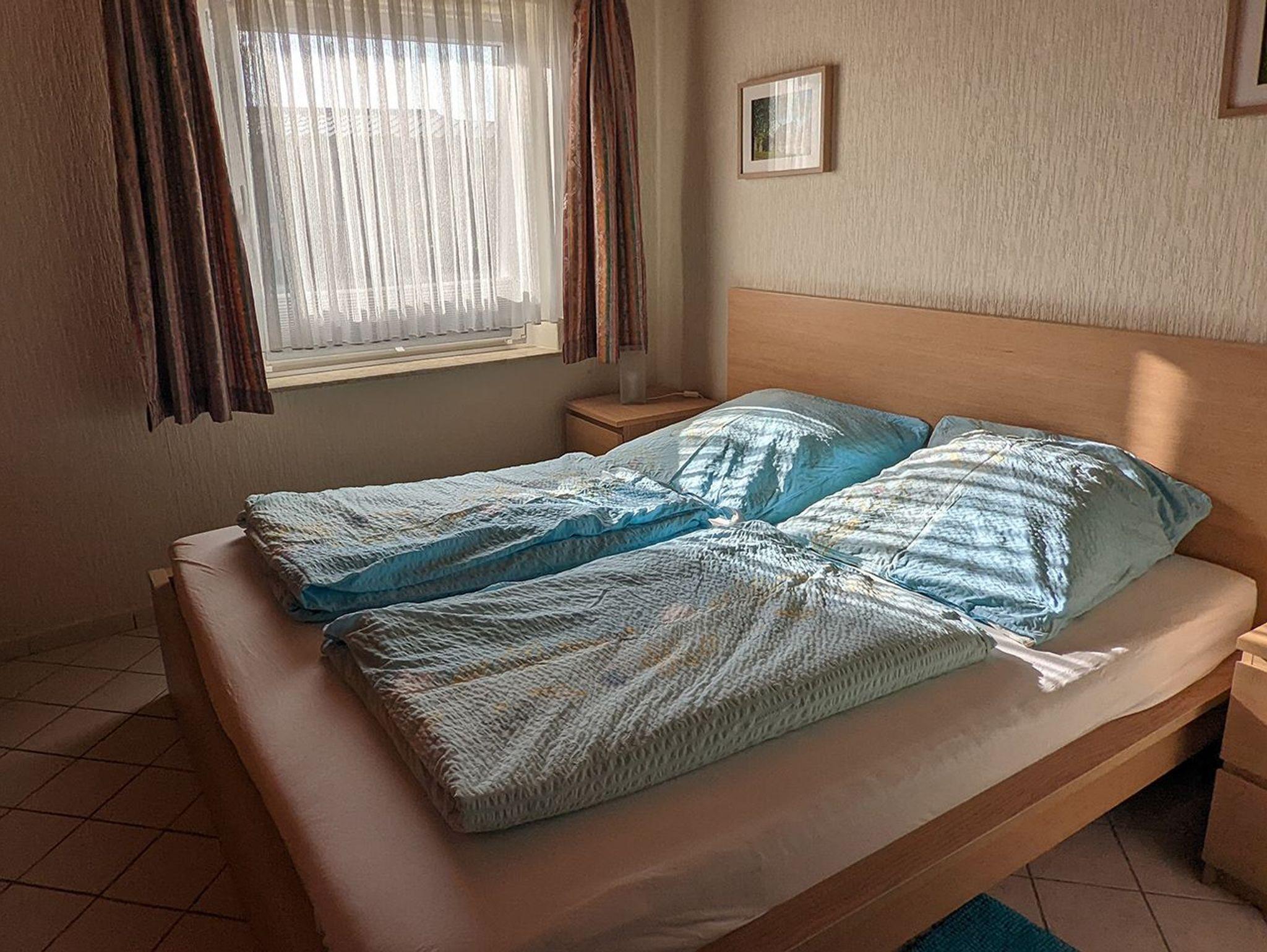 Die ca. 40 m² große Ferienwohnung mit Flur, Wohnzimmer, Duschbad/WC und zwei Schlafräumen ist für 3 Personen geeignet. Sie ist zentralbeheizt, die Böden sind gefliest, im Wohnzimmer liegt ein Teppich. Bad und Doppelzimmer grenzen an das Wohnzimmer. Durch das Doppelzimmer (Durchgangszimmer) erreicht man das zweite Schlafzimmer (Kinderzimmer). Im Kinderzimmer sind Teppichböden und ein Einzelbett (80x200 cm ausziehbar) . Handtücher, Küchentücher und Bettwäsche werden gestellt und wöchentlich gewechselt.