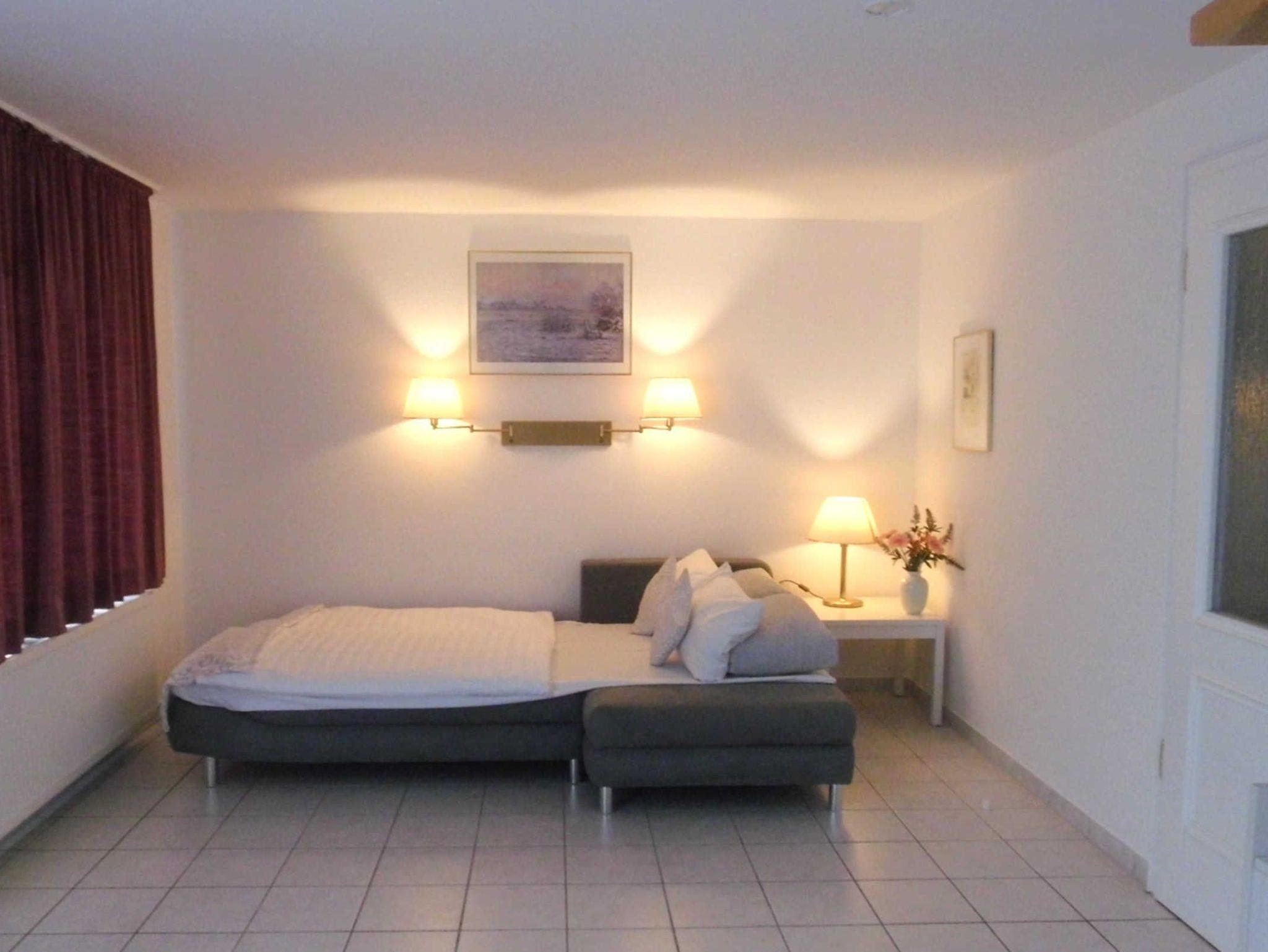 3-Raum-Appartement, EG/Maisonettenwohnung mit ca. 95 m² . Dem Gast steht eine Wohnküche mit einem Doppelschlafsofa, ein Schlafzimmer mit Doppelbett sowie ein Wohn-Schlafbereich mit Schlafcouch für 2 Personen zur Verfügung. Ein Balkon mit eingeschränktem Meerblick und eine Terrasse runden die Ferienunterkunft ab.