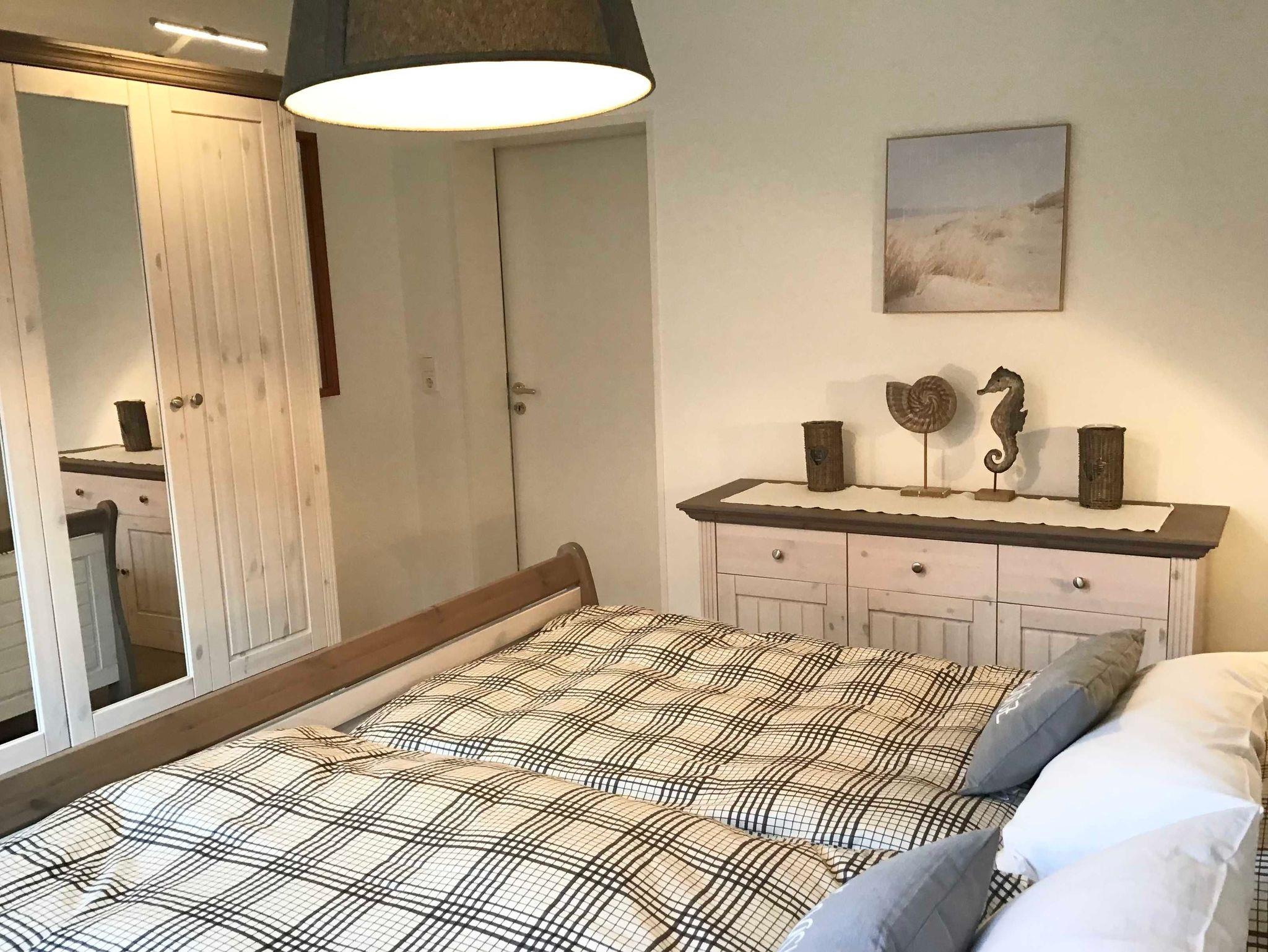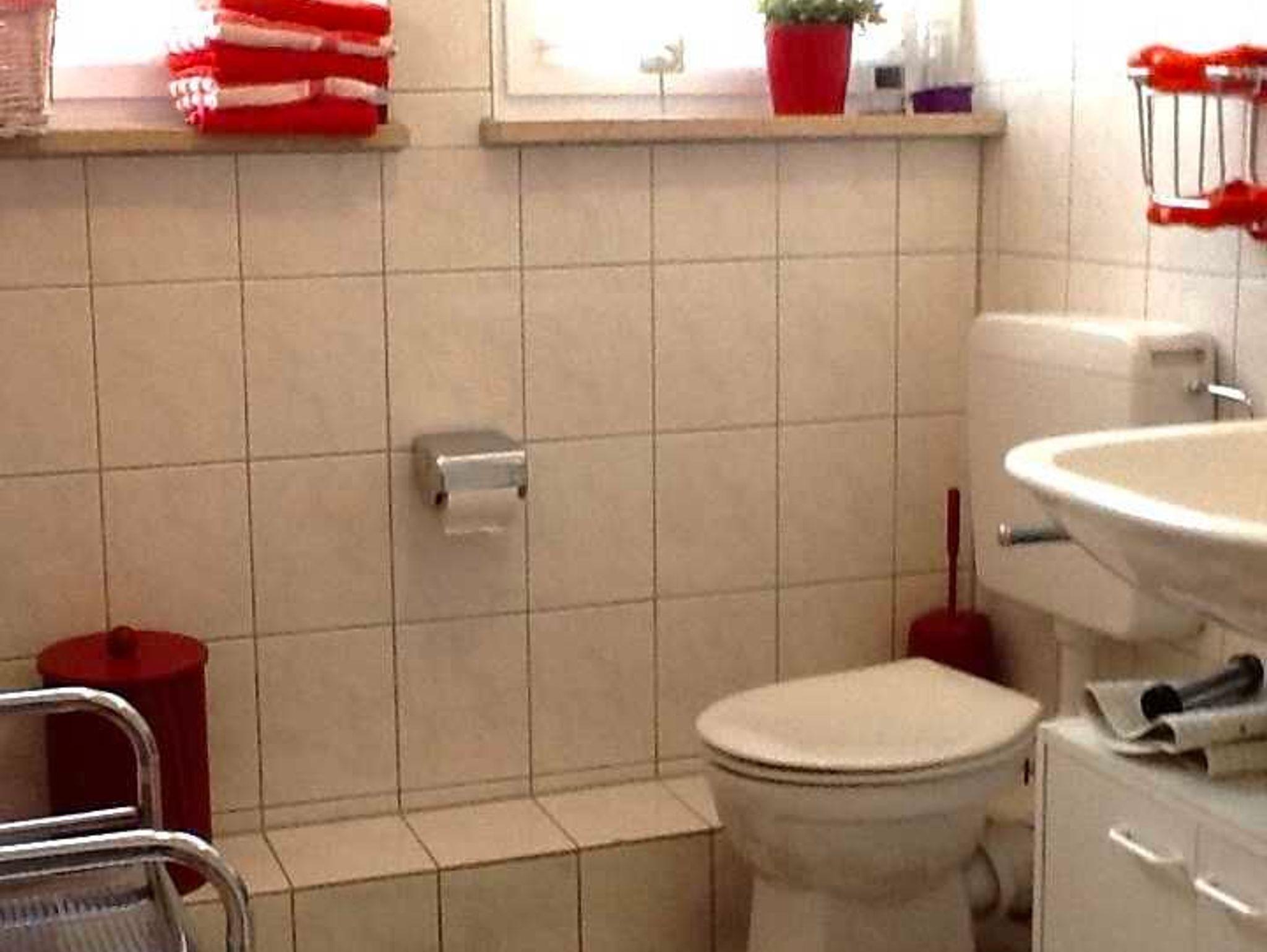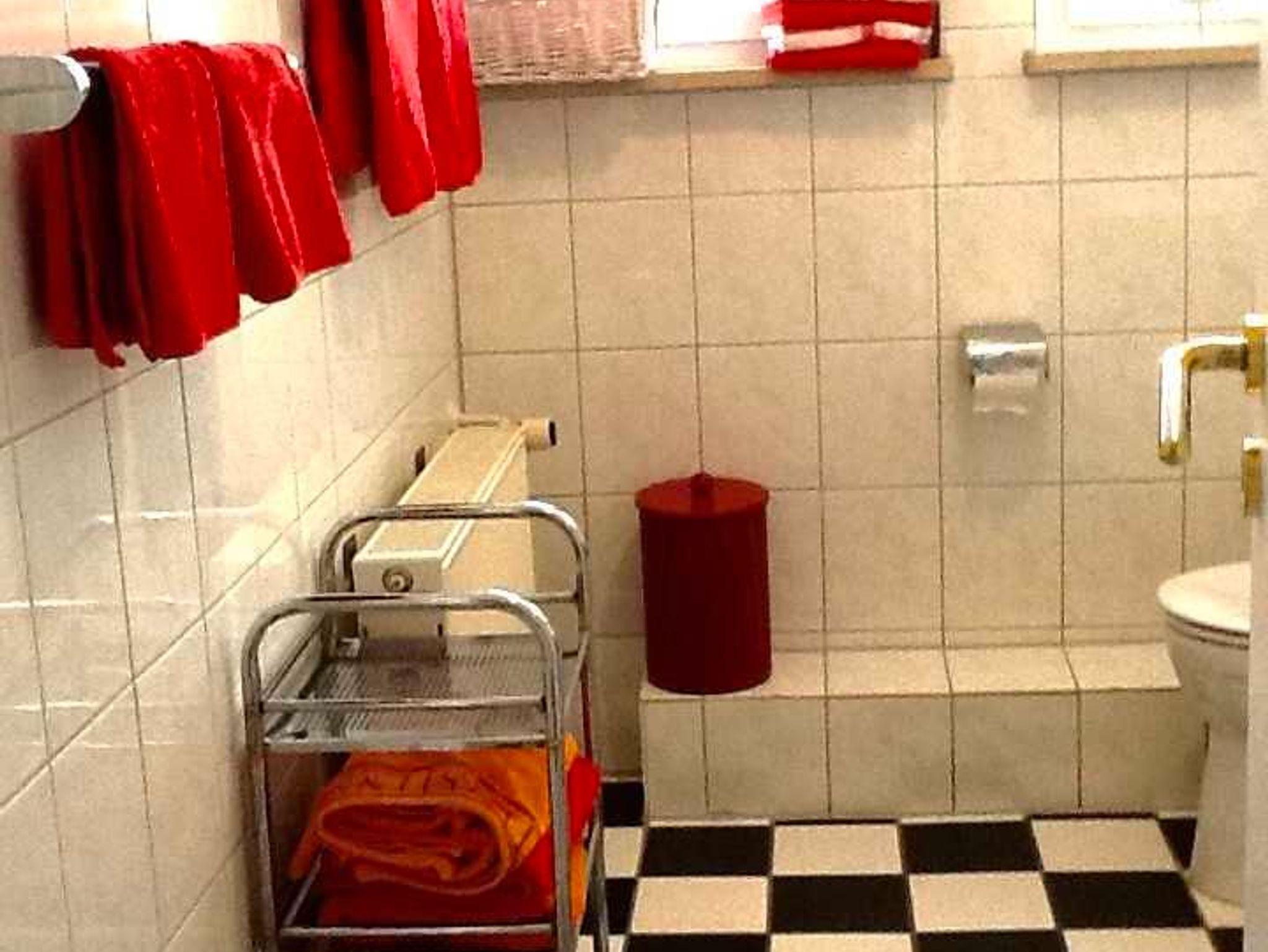 Die Ferienwohnung Nr. 1 liegt ebenerdig und hat einen eigenen Eingang. Vom großen Flur gehen alle Zimmer ab. Es gibt ein separates Schlafzimmer mit Schrank und einem Ehebett (2 x 2 m) und ein weiteres Kinderzimmer mit einem Einzel-/Doppelbett, welches auf 1,60 m ausziehbar ist. Auch im Wohnzimmer kann die Couch als Schlafmöglichkeit genutzt werden (1,60 x 2 m). Das Duschbad ist freundlich weiß/rot gefliest und entsprechend eingerichtet. Die separate Küche ist mit allem, was man zum Kochen und Genießen braucht, sehr gut ausgestattet. Der Boden besteht teilweise aus Fliesen, Laminat und Teppich und alle Fenster haben ein Außenrollo. Vor der Eingangstür befindet sich eine kleine niedliche Sitzmöglichkeit. Als optionale Serviceleistungen können Bettwäsche und Handtücher dazugebucht werden.