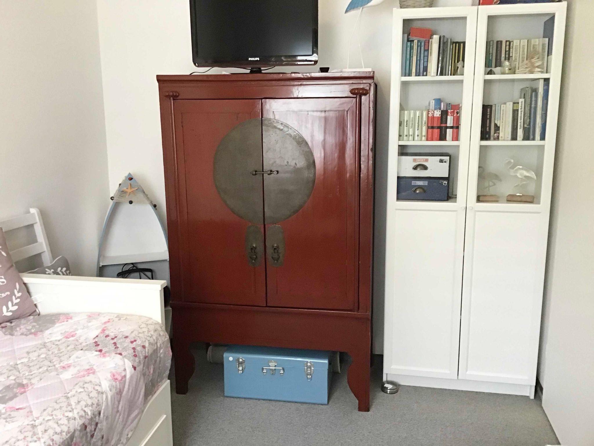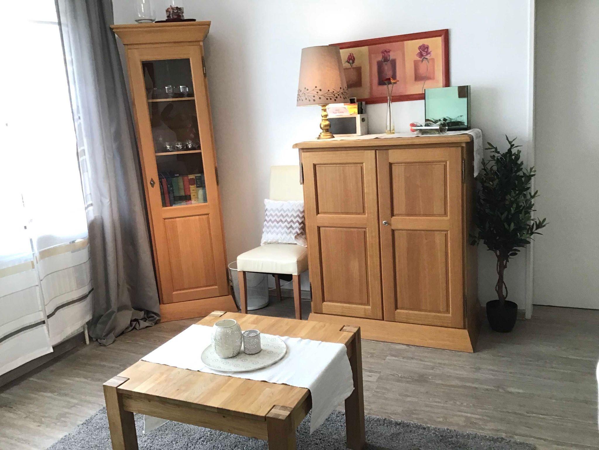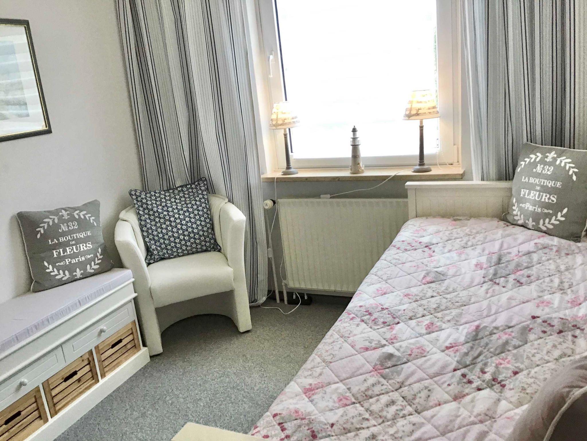 Die Ferienwohnung Nr. 1 liegt ebenerdig und hat einen eigenen Eingang. Vom großen Flur gehen alle Zimmer ab. Es gibt ein separates Schlafzimmer mit Schrank und einem Ehebett (2 x 2 m) und ein weiteres Kinderzimmer mit einem Einzel-/Doppelbett, welches auf 1,60 m ausziehbar ist. Auch im Wohnzimmer kann die Couch als Schlafmöglichkeit genutzt werden (1,60 x 2 m). Das Duschbad ist freundlich weiß/rot gefliest und entsprechend eingerichtet. Die separate Küche ist mit allem, was man zum Kochen und Genießen braucht, sehr gut ausgestattet. Der Boden besteht teilweise aus Fliesen, Laminat und Teppich und alle Fenster haben ein Außenrollo. Vor der Eingangstür befindet sich eine kleine niedliche Sitzmöglichkeit. Als optionale Serviceleistungen können Bettwäsche und Handtücher dazugebucht werden.