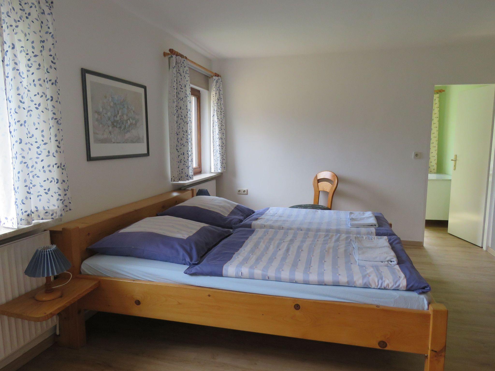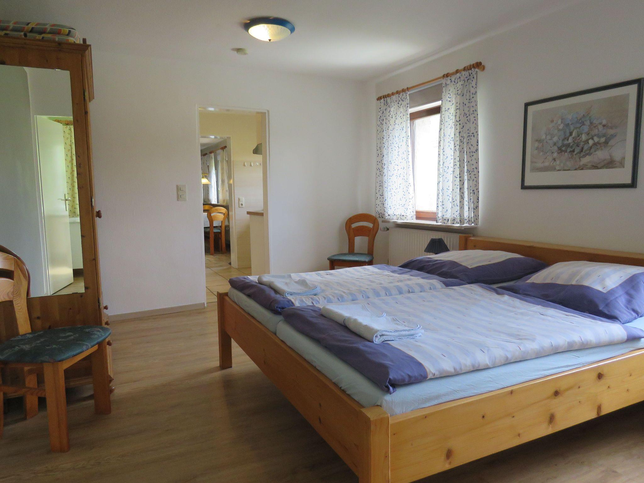 Von der Küche aus gelangt man in ein großes Schlafzimmer mit Doppelbett und Kleiderschrank.