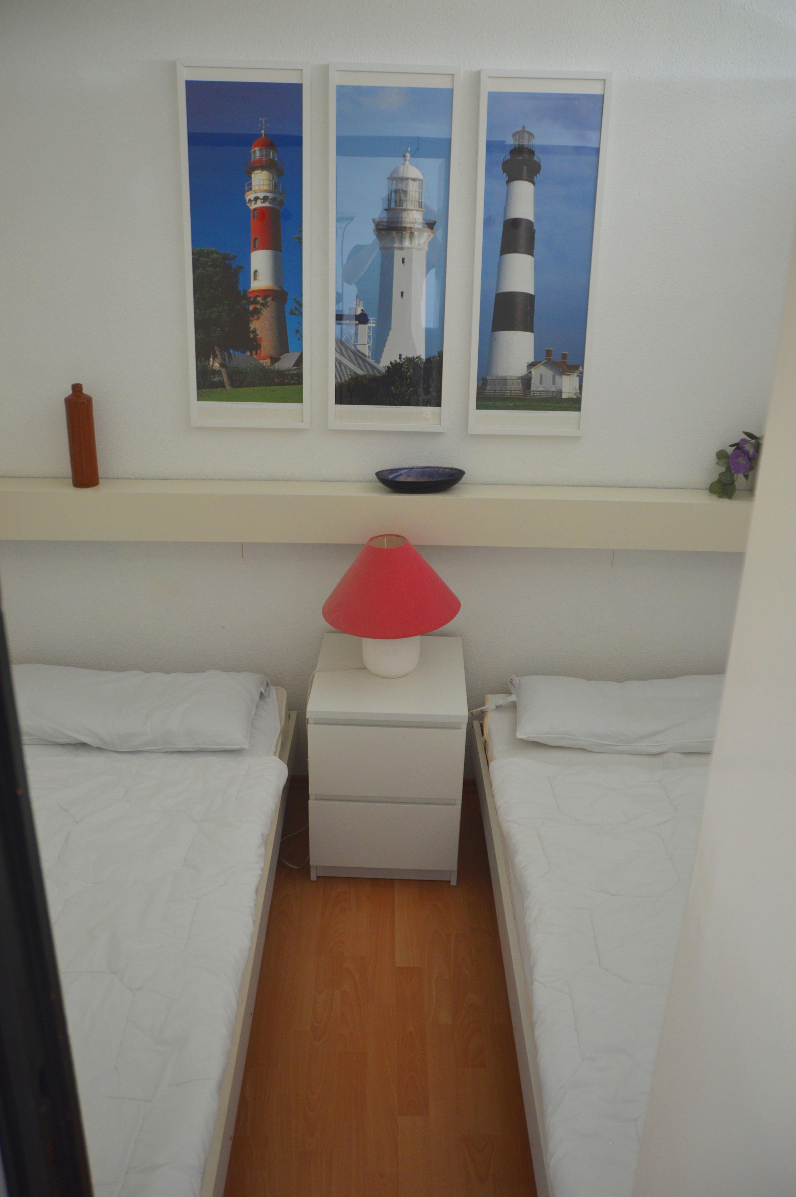 Das Elternschlafzimmer verfügt über zwei Einzelbetten mit Mittelgang.