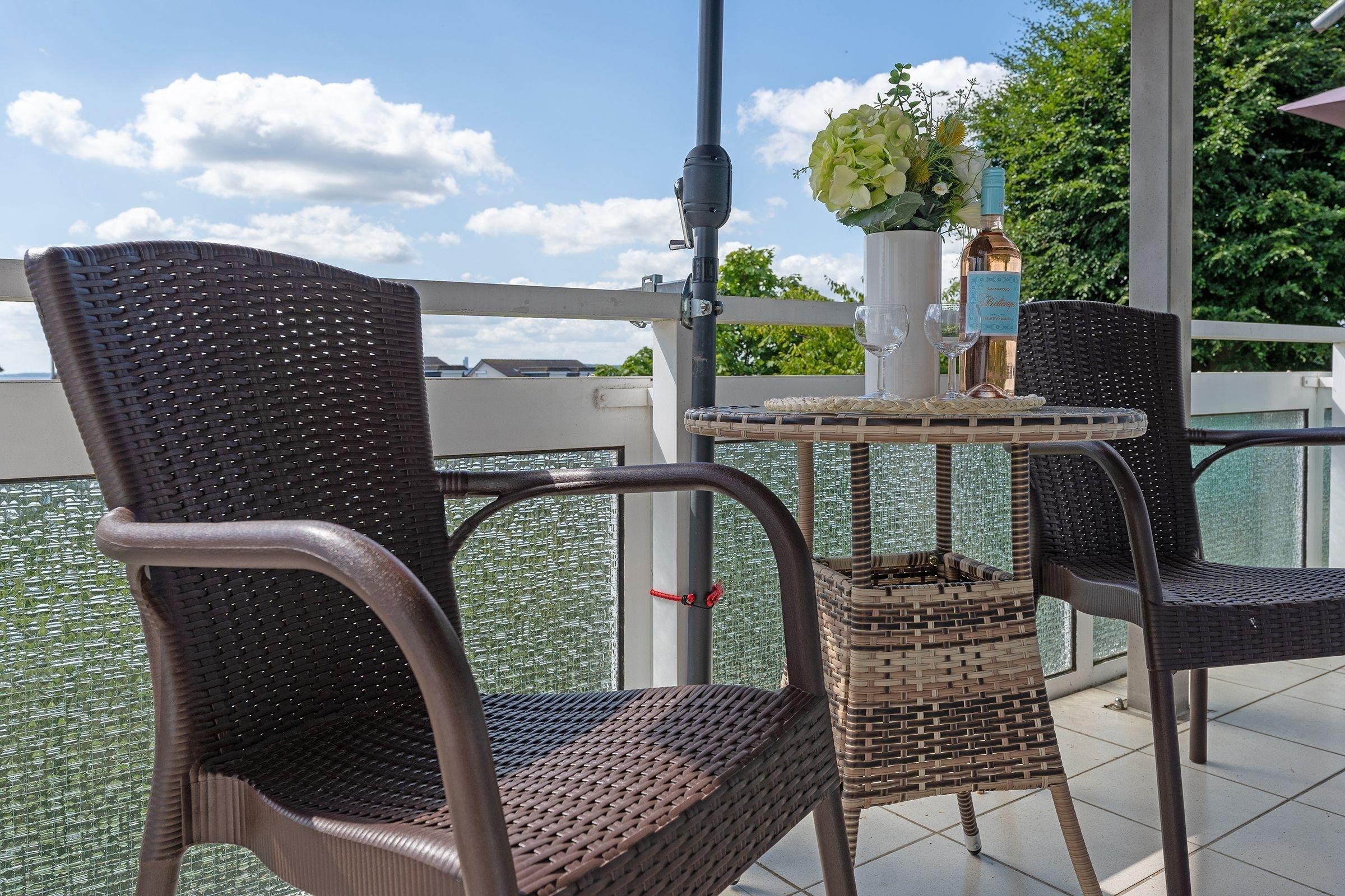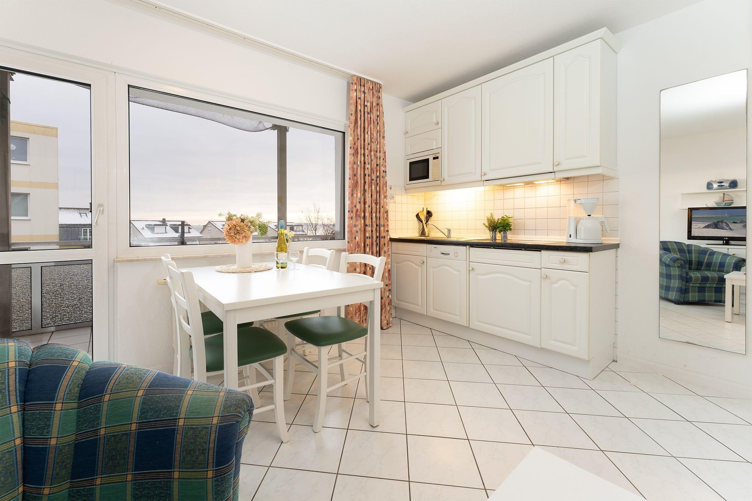 Das 2-Zimmer-Appartement hat ca. 36 m² und bietet Platz für bis zu 4 Personen. Es ist komplett gefliest und verfügt über einen Wohnraum mit: Schlafcouch für 2 Personen, TV-Gerät, Radio/CD-Player, Essplatz, integrierter Küchenzeile sowie einem Zugang zum großzügigen Balkon mit Gartenmöbeln und etwas Meerblick. Die moderne Küchenzeile ist ausgestattet mit: Induktionsherd (4 Kochplatten), Kühlschrank mit Gefrierfach, Mikrowelle, Geschirrspülmaschine, Wasserkocher, Kaffeemaschine und Toaster. Im Schlafzimmer befinden sich ein Doppelbett (2x 90x200 cm) und ein 2. Zugang zum Balkon. Duschbad mit Fön.
