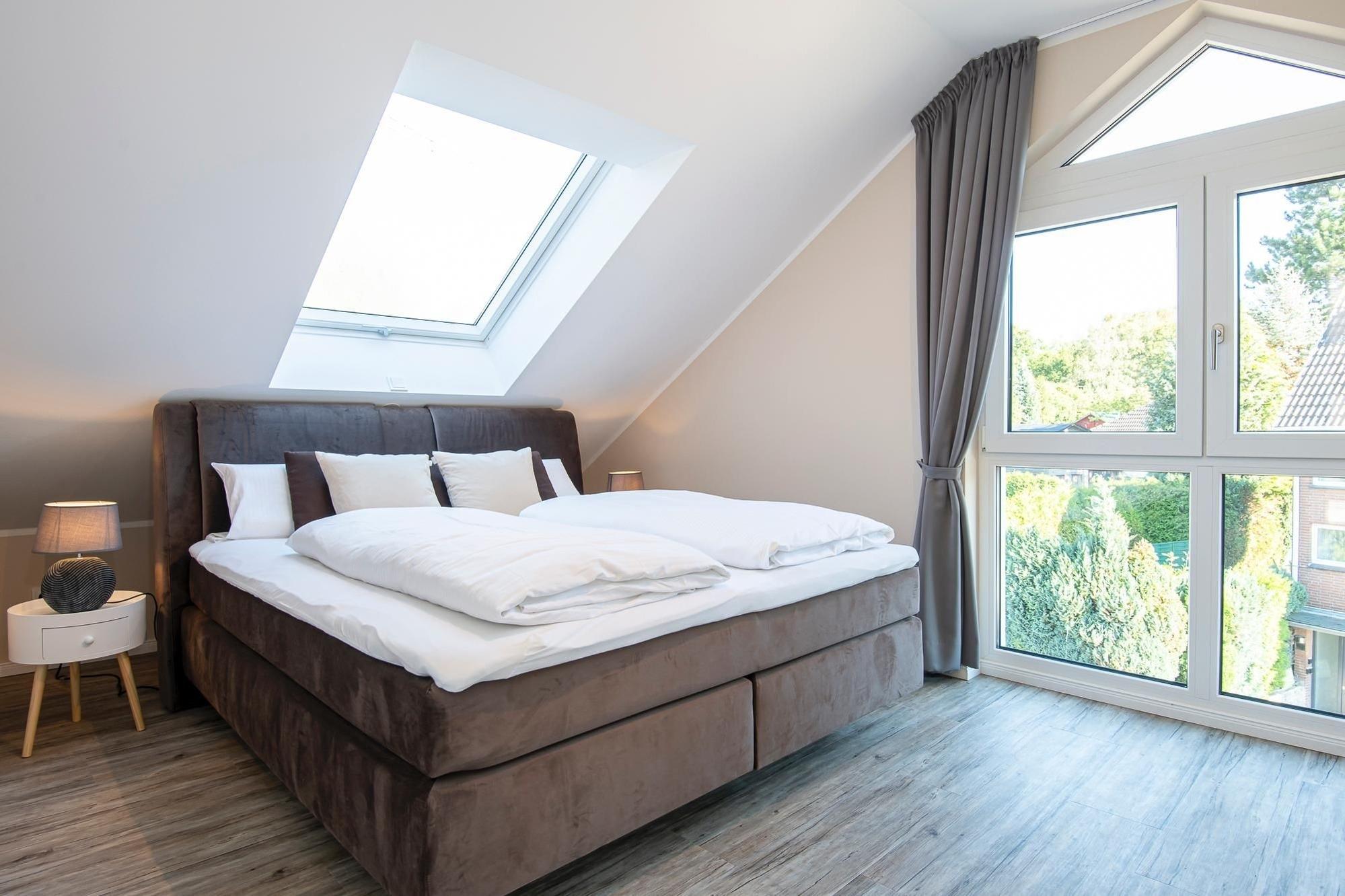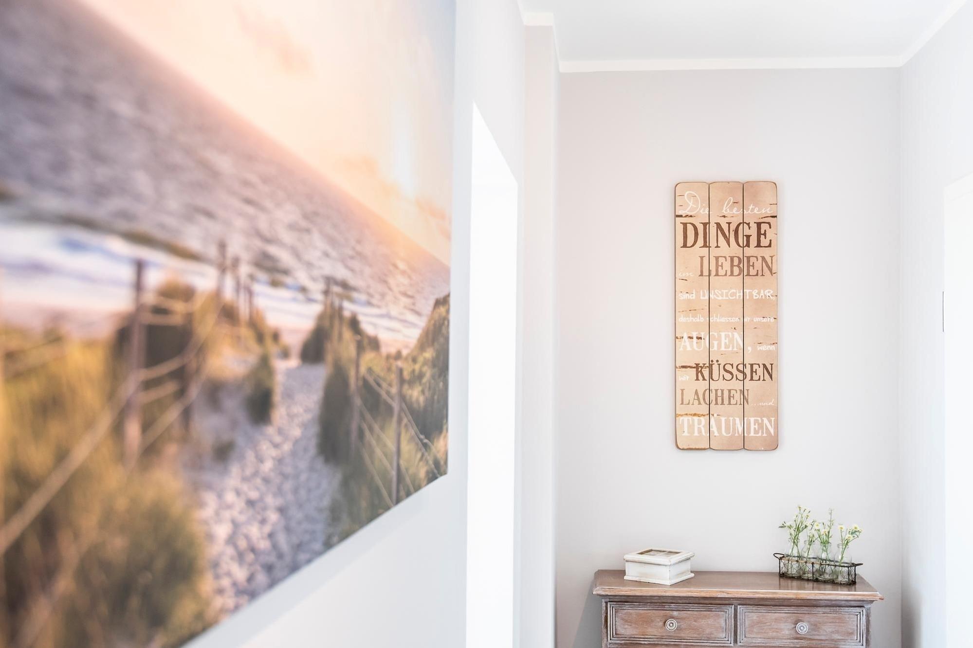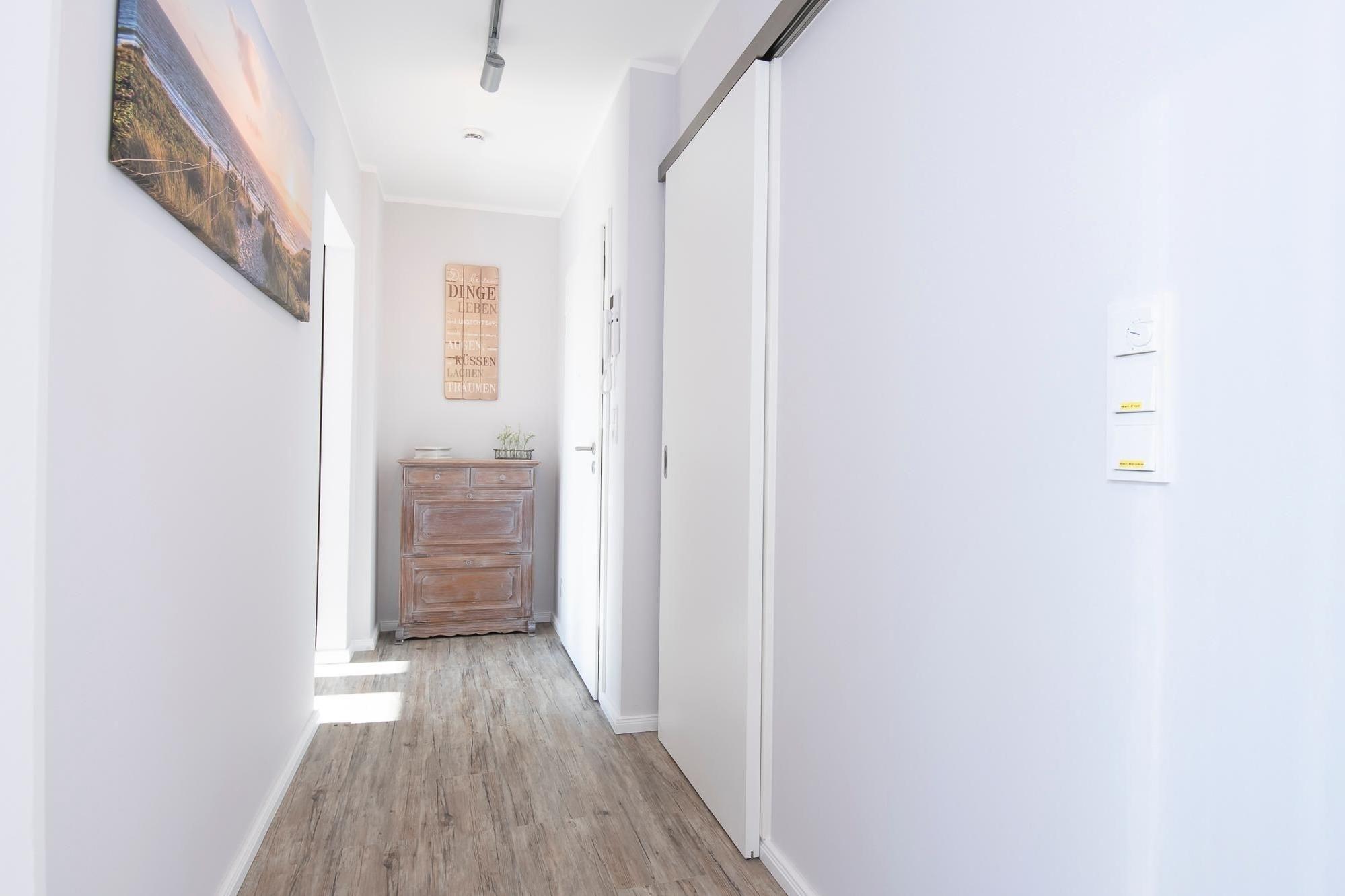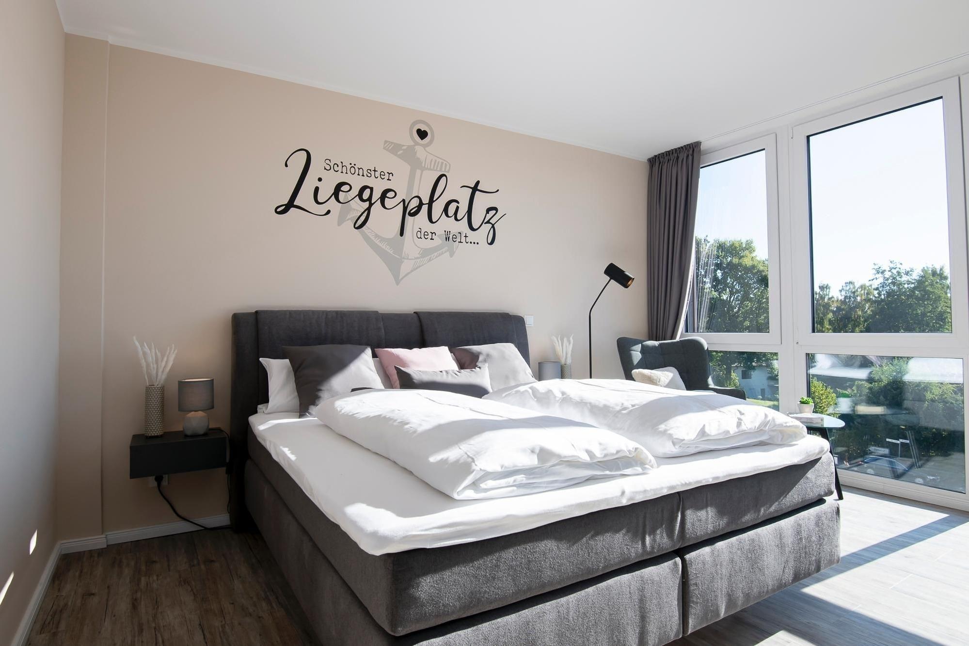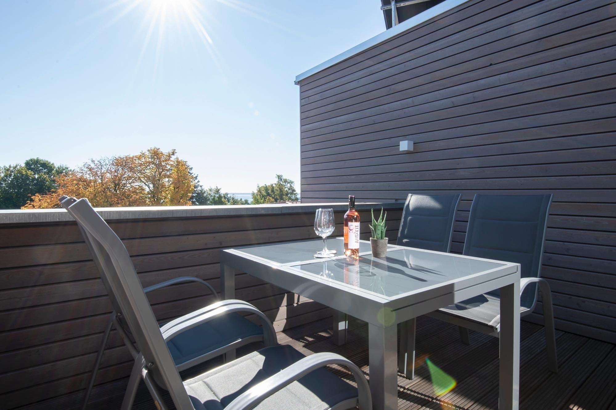 Durch einen ausgefeilten Grundriss ist die Wohnung lichtdurchflutet und überzeugt mit einem Blick auf die Ostsee. Der Eingangsbereich führt direkt in die offene, moderne, voll ausgestattete Küche über, die vis à vis zur Loggia mit Meerblick liegt. Bereiten Sie sich schmackhafte Köstlichkeiten zu und genießen Sie diese direkt auf Ihrem möblierten Balkon, begleitet vom Rauschen des Meeres und Rufen der Möwen. Sollte das Wetter es einmal nicht zulassen, unter freiem Himmel zu essen, steht im Wohnbereich ein Esstisch mit Platz für Vier bereit. Zu spannenden Kinoabenden vor dem Flachbild-TV oder geselligen Spieleabenden lädt Sie im Wohnbereich ein gemütliches Ecksofa zum Kuscheln ein. Loggen Sie sich im kostenlosen WLAN-Netzwerk ein und bleiben Sie auch im Urlaub erreichbar. Im Hauptschlafzimmer mit Flat-TV wartet ein komfortables Boxspringbett (2x 90x200 cm, durchgehender Topper) für erholsame Nächte auf Sie. Dank Verdunkelungsgardinen mit Wärmeschutz kann man hier auch im Sommer angenehm schlafen. Im zweiten separaten Schlafzimmer können sich 2 weitere Urlaubsgäste ebenfalls in die Kissen eines Boxspringbettes (2x 90x200 cm, durchgehender Topper) fallen lassen. Dieser Raum lässt sich durch elektrische Außenrollläden verdunkeln. Neue Energie tanken Sie nach einer erfrischenden Dusche im hochwertigen Badezimmer mit Handtuchheizung, Waschmaschine und Föhn. Für angenehme Wärme sorgt eine Fußbodenheizung in der ganzen Wohnung.