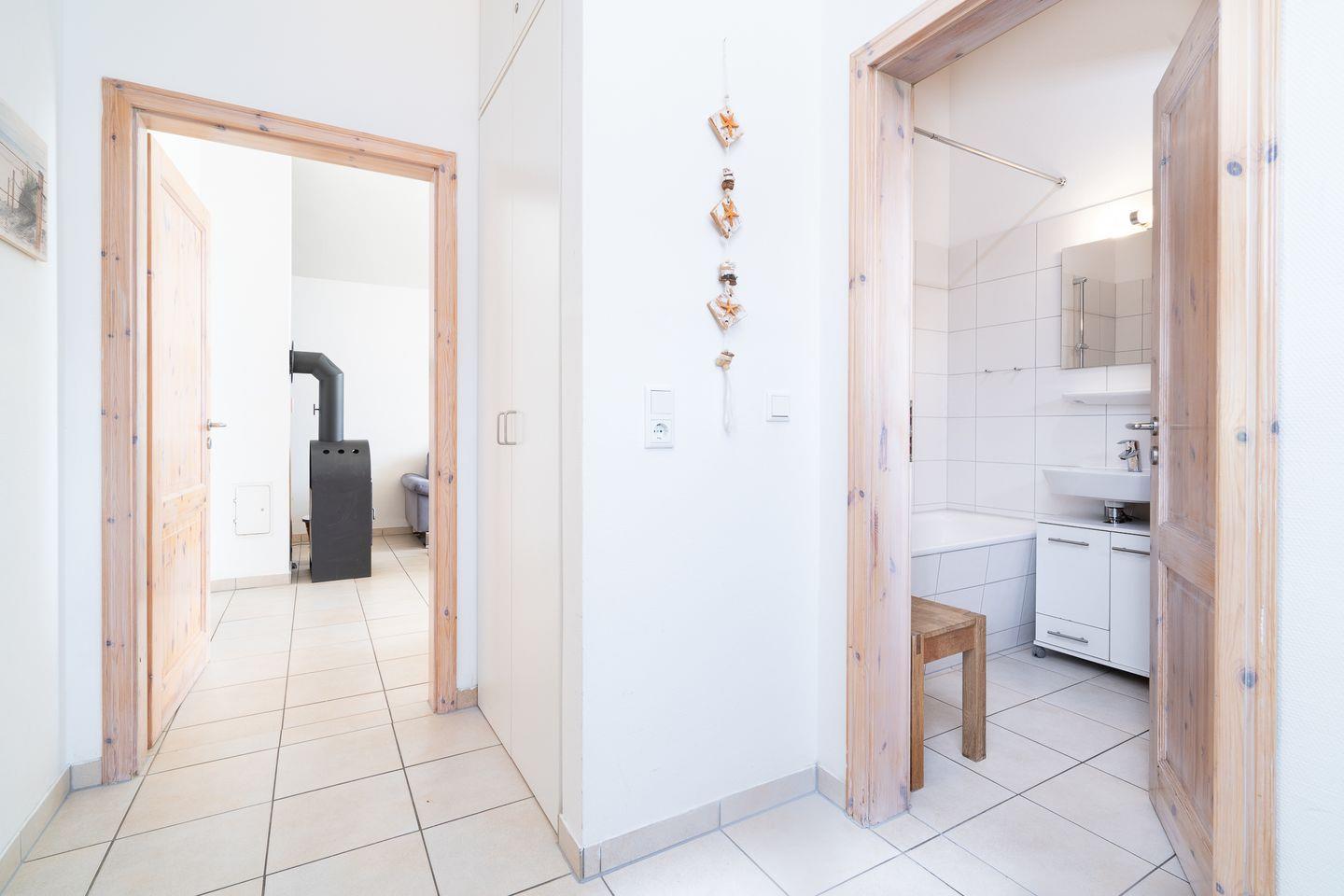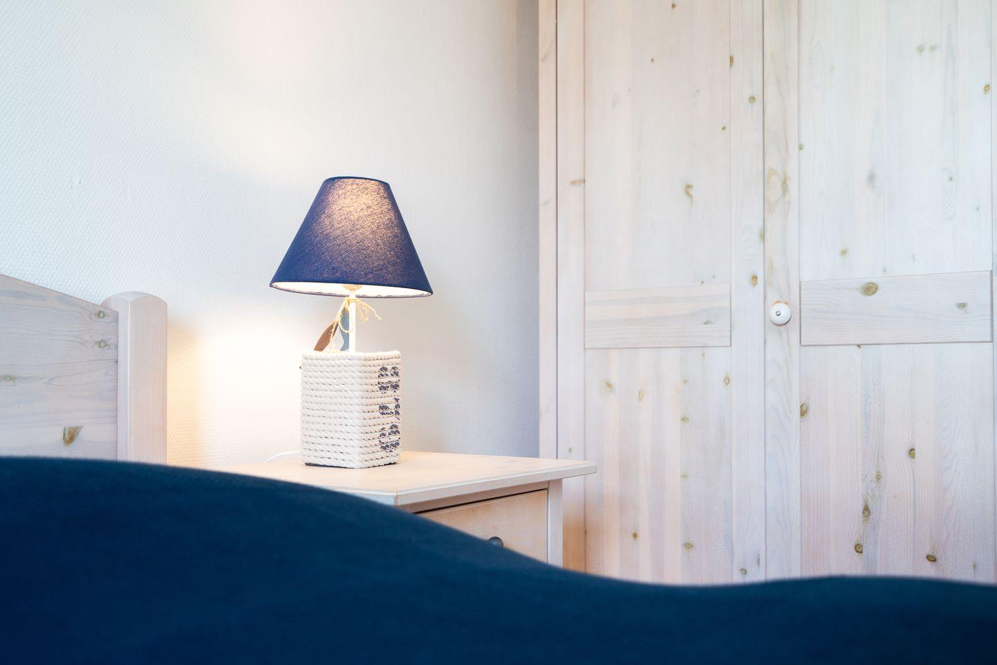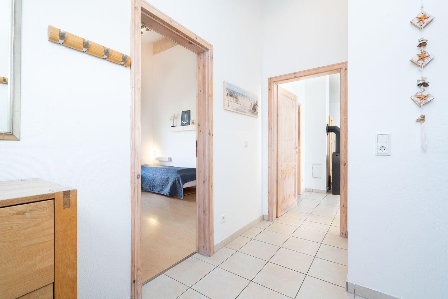Auf 70 qm stehen Ihnen auf einer Ebene zwei Schlafräume und ein geräumiger Wohnraum mit Kamin und Zugang zur Terrasse mit Meerblick zur Verfügung. Der Kaminofen sorgt für gemütliche Stunden mit Freunden und Familie. Die zum Essbereich offene Küche ist mit Spülmaschine, Backofen und Herd voll ausgestattet. Der erste Schlafraum hat ein Doppelbett (2x 80 cm x 200 cm), im zweiten stehen zwei Einzelbetten (jeweils 80 cm x 200 cm). Im Bad finden Sie auch die Sauna, sowie eine Badewanne. Der Komfort einer eigenen Sauna wird sehr von unseren Wintergästen geschätzt. Eine eigene Waschmaschine gehört ebenfalls zur Ausstattung. Die Beheizung erfolgt über Elektroheizungen und den Kamin.