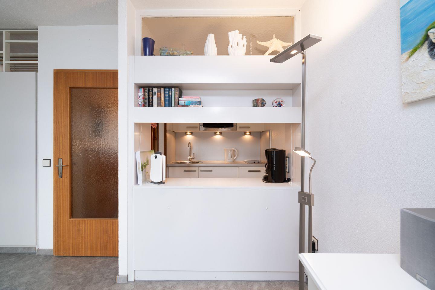 Die Ferienwohnung Nr. 382 ist eine 2-Raum-Nichtraucherwohnung in der 2. Etage mit Balkon und Ostseeblick. Sie bietet Platz für zwei Personen, die in Einzelbetten schlafen können. Vom kombinierten Wohn- und Essbereich haben Sie Zugang zum Balkon. Die Küchenzeile mit Spülmaschine, Kühlschrank und kleinem Kochfeld ist zum Wohn- und Essbereich hin halb offen. Es gibt ein innenliegendes Duschbad. Zum Strand sind es nur wenige Fußschritte.