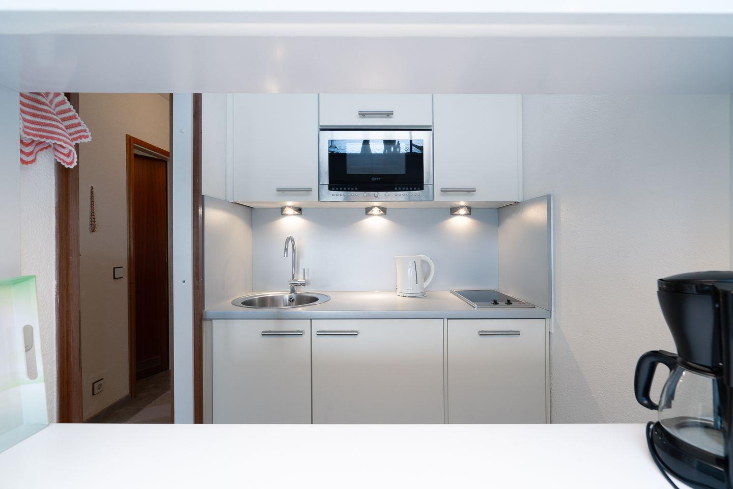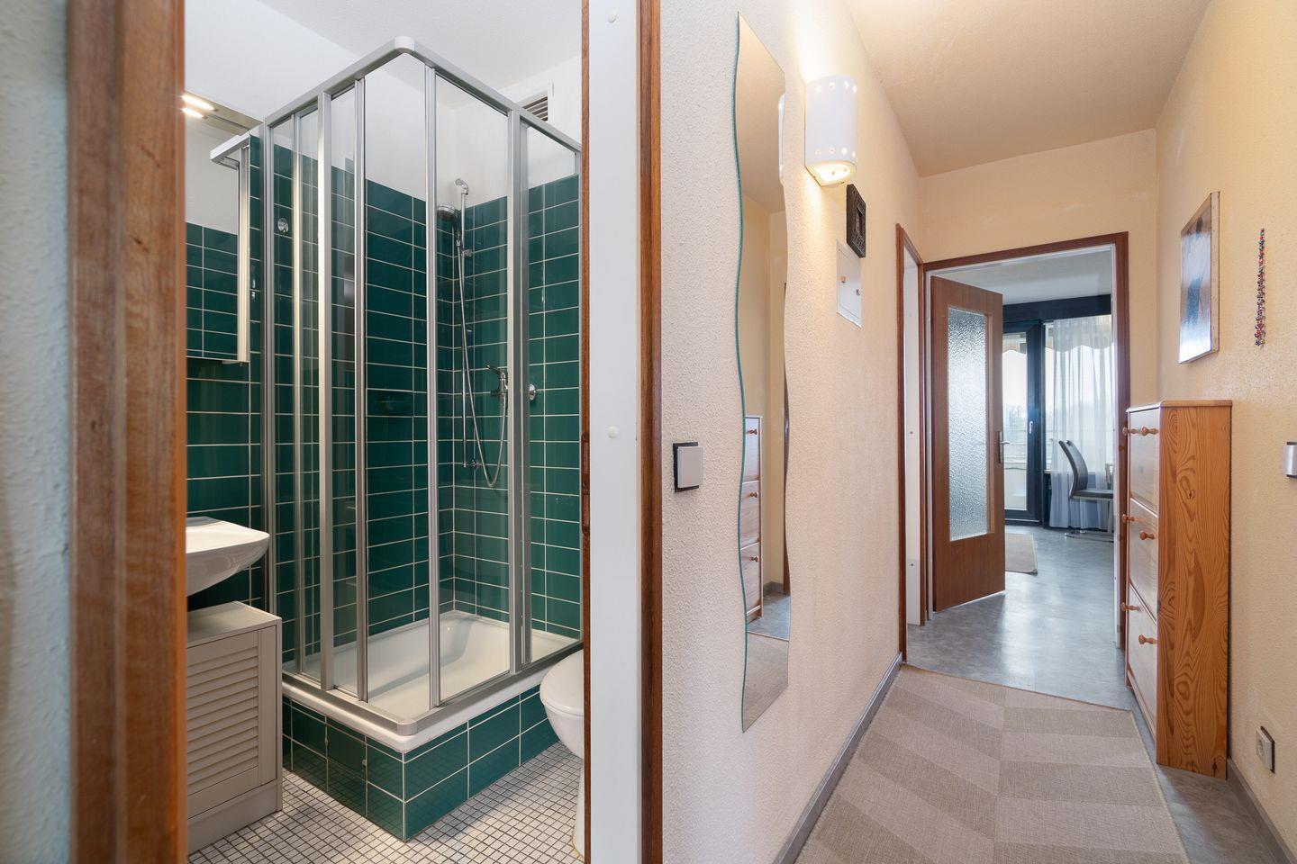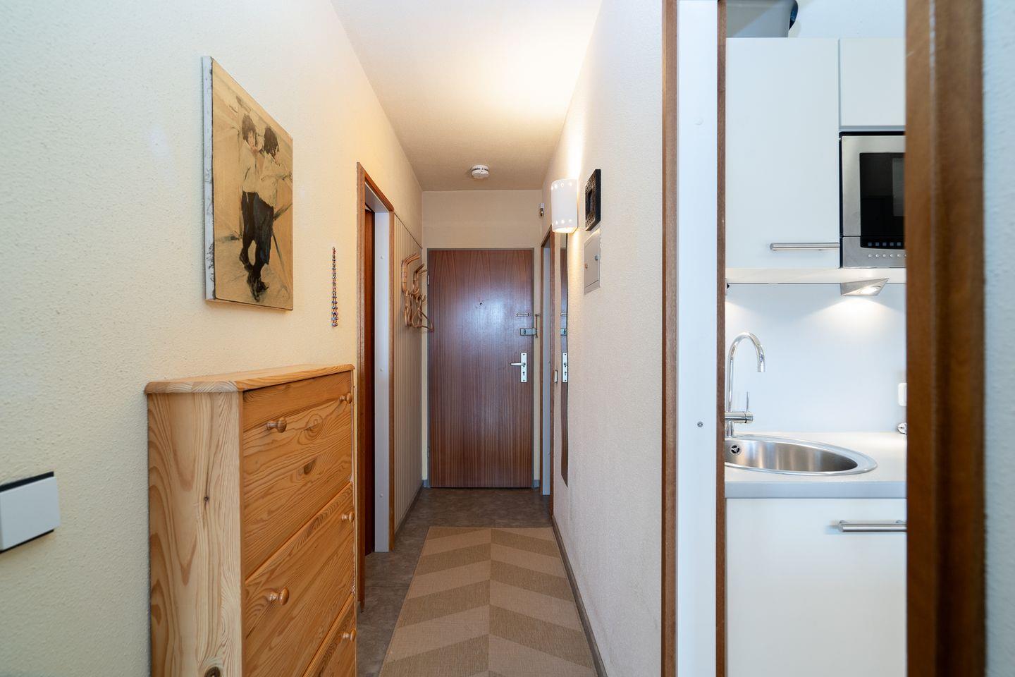 die Wohnung befindet sich im Hochhaus in der 2. Etage mit Balkon und Ostseeblick. Vom kombinierten Wohn- und Essbereich haben Sie Zugang zum Balkon. Die Küchenzeile mit Spülmaschine, Kühlschrank und kleinem Kochfeld ist mit einer Durchreiche zum Wohn- und Essbereich hin offen. Im Schlafraum befinden sich zwei Einzelbetten (jeweils 90 cm x 190 cm), die man nicht zusammenschieben kann. Das Duschbad ist innenliegend. Ohne eine Straße überqueren zu müssen, sind es zum Strand nur wenige Fußschritte. PKW-Stellplatz inklusive.