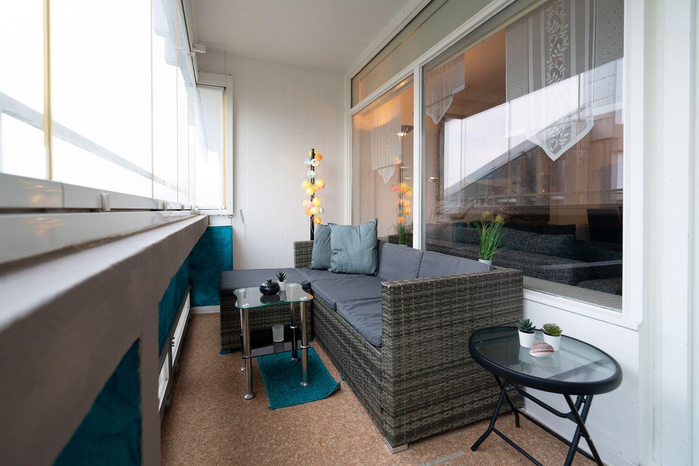 Der Balkon ist durch eine Fensterfront geschützt, so dass Sie diesen auch Abends, bei kühleren Temperaturen oder selbst starken Windböen nutzen können.