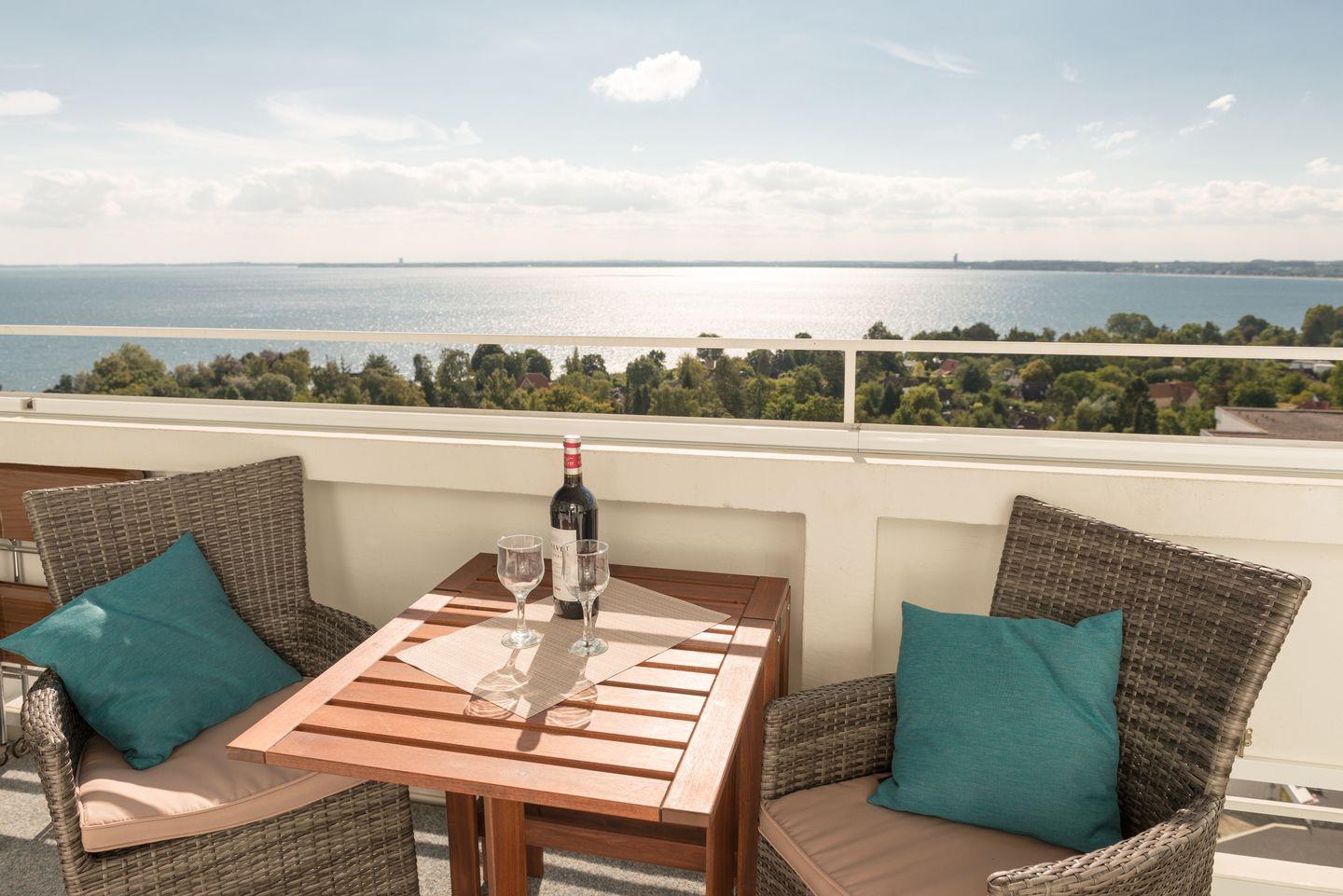 2 Zimmer, 45 qm, verglaster Balkon, direkter Meerblick mit Top-Ausstattung - bereits ab 65 €/Nacht