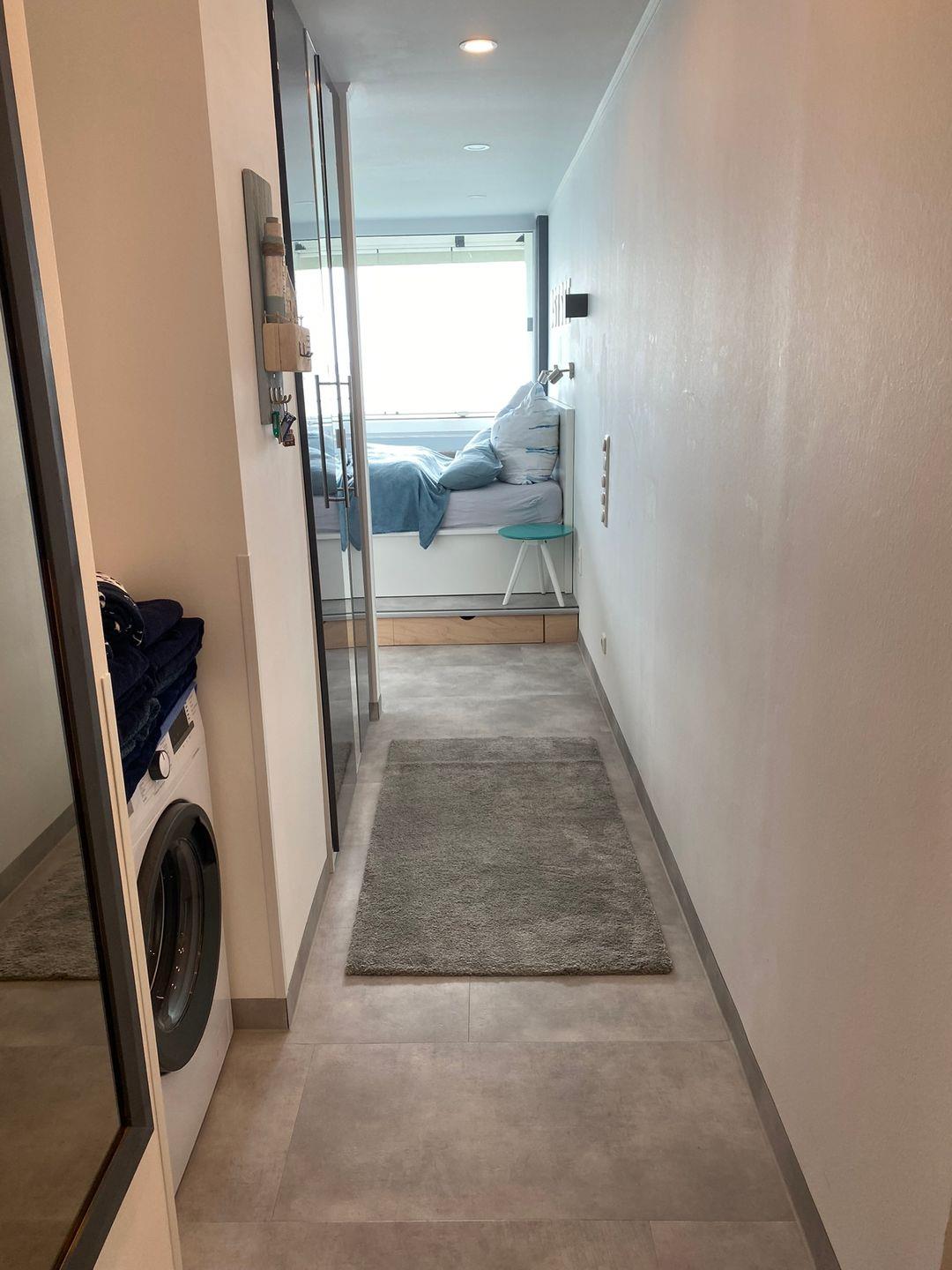 - Waschmaschine und großer Kleiderschrank im Flur