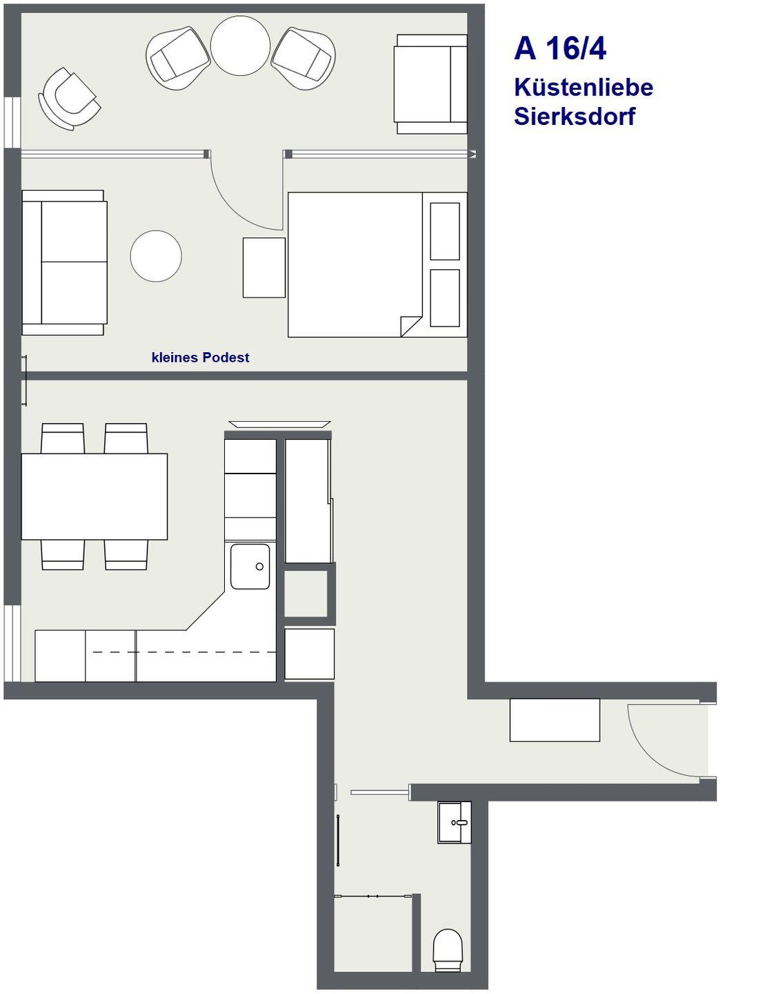 HINWEIS: Der Wohn-/Schlafbereich verfügt zwar über 4 Schlafmöglichkeiten, aber kein separates Schlafzimmer!
