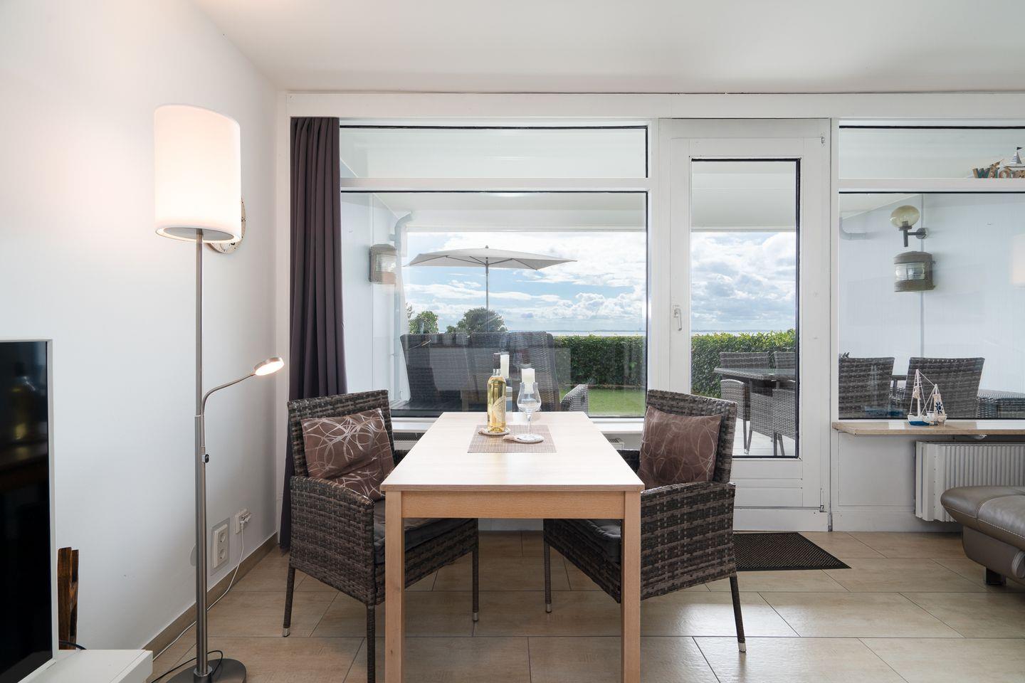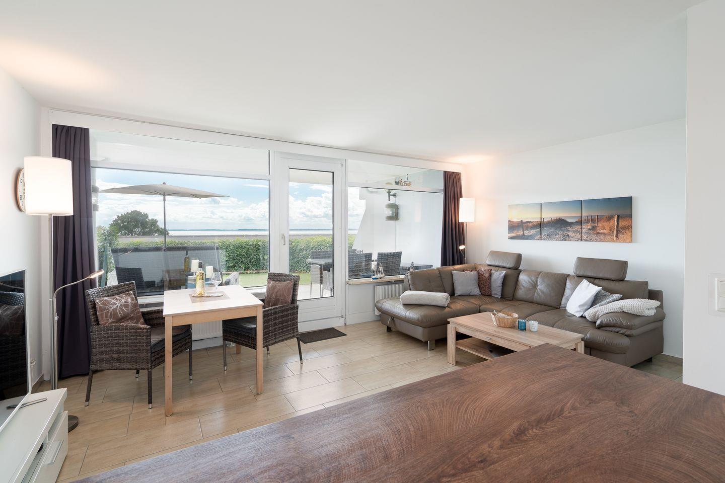 Unser im Jahr 2022 und 2023 umfangreich und mit Liebe im Detail modernisiertes Appartement ist mit zwei separaten Schlafzimmern, einem modernen Bad sowie einer offenen Küche im Wohnbereich ausgestattet und besticht insbesondere durch die rund 18 qm große überdachte Terrasse, die zu jeder Jahreszeit einlädt, den herrlichen Meerblick zu genießen. Die Seele baumeln lassen in den gemütlichen Loungesesseln und auf dem Meer der Lübecker Bucht die kleinen Boote und großen Schiffe beobachten: das ist Urlaub pur! Die süd-östliche Ausrichtung der Terrasse bietet allen „Early-Birds“ die Möglichkeit, herrliche Sonnenaufgänge über der Neustädter Bucht zu bewundern und die „Später-Aufsteher“ frühstücken windgeschützt im Sonnenlicht. Die letzten Sonnenstrahlen des Tages können dann bis zum späten Nachmittag auf der vorgelagerten Rasenfläche genossen werden.