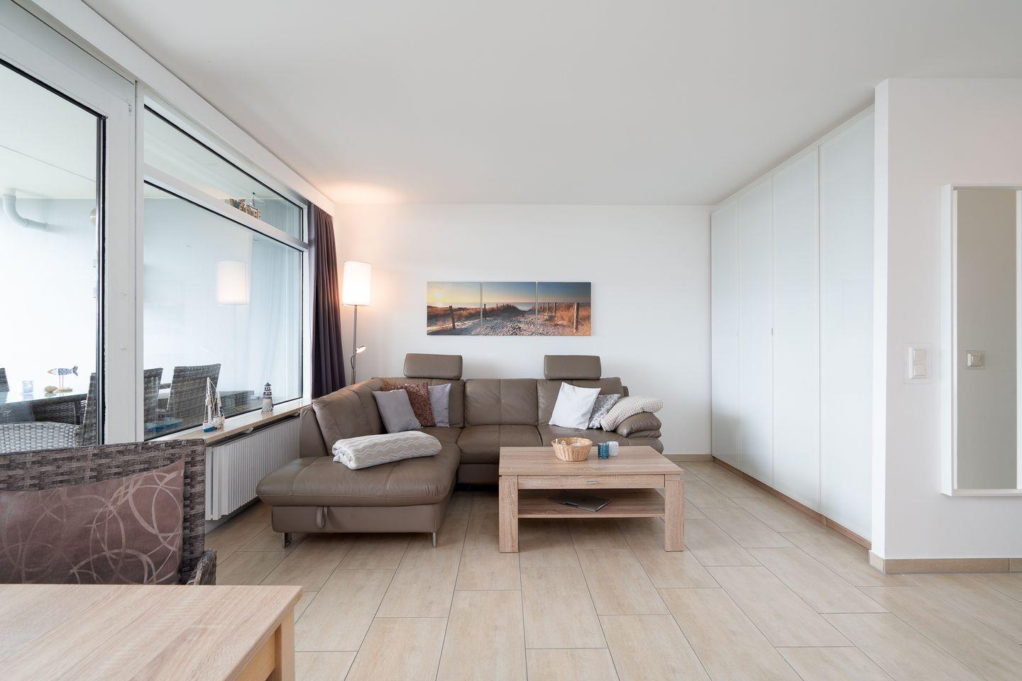 Die umfangreich und mit Liebe ins Detail modernisierte Ferienwohnung Nr. 131 ist mit zwei separaten Schlafzimmern, einem modernen Bad sowie einer offenen Küche mit Spülmaschine, Backofen und Herd im Wohnbereich ausgestattet und besticht durch die rund 18 qm große überdachte Terrasse. Im ersten Schlafzimmer steht ein Doppelbett, im zweiten ein Einzelbett. Das moderne Bad hat eine bodengleiche Dusche. Zum Strand sind es nur wenige Gehminuten. WLAN inklusive.