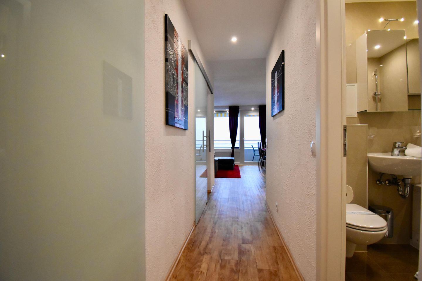 Die Unterkunft präsentiert sich mit einem einladenden Wohn- Essbereich, einer modernen offenen Küche, in dem gemeinsame Mahlzeiten zu einem Genuss werden. Die großen Fenster lassen viel natürliches Licht herein und bieten einen herrlichen Blick auf das glitzernde Meer. Der Balkon, der direkt vom Wohnzimmer aus zugänglich ist, ist zweifellos das Highlight dieses Zuhauses. Genießen Sie hier Ihren Morgenkaffee mit dem Rauschen der Wellen im Hintergrund oder erleben Sie den Zauber eines romantischen Sonnenaufganges über der Ostsee.