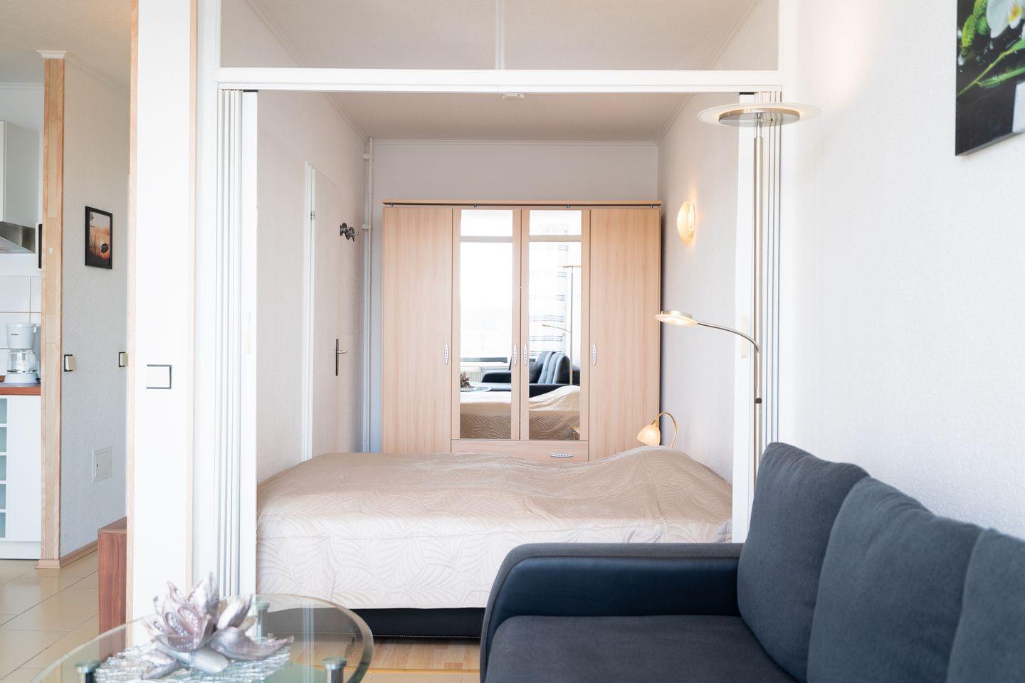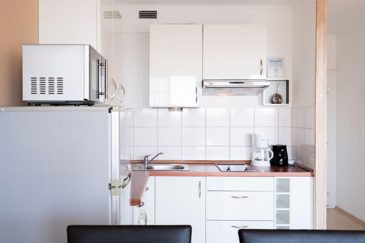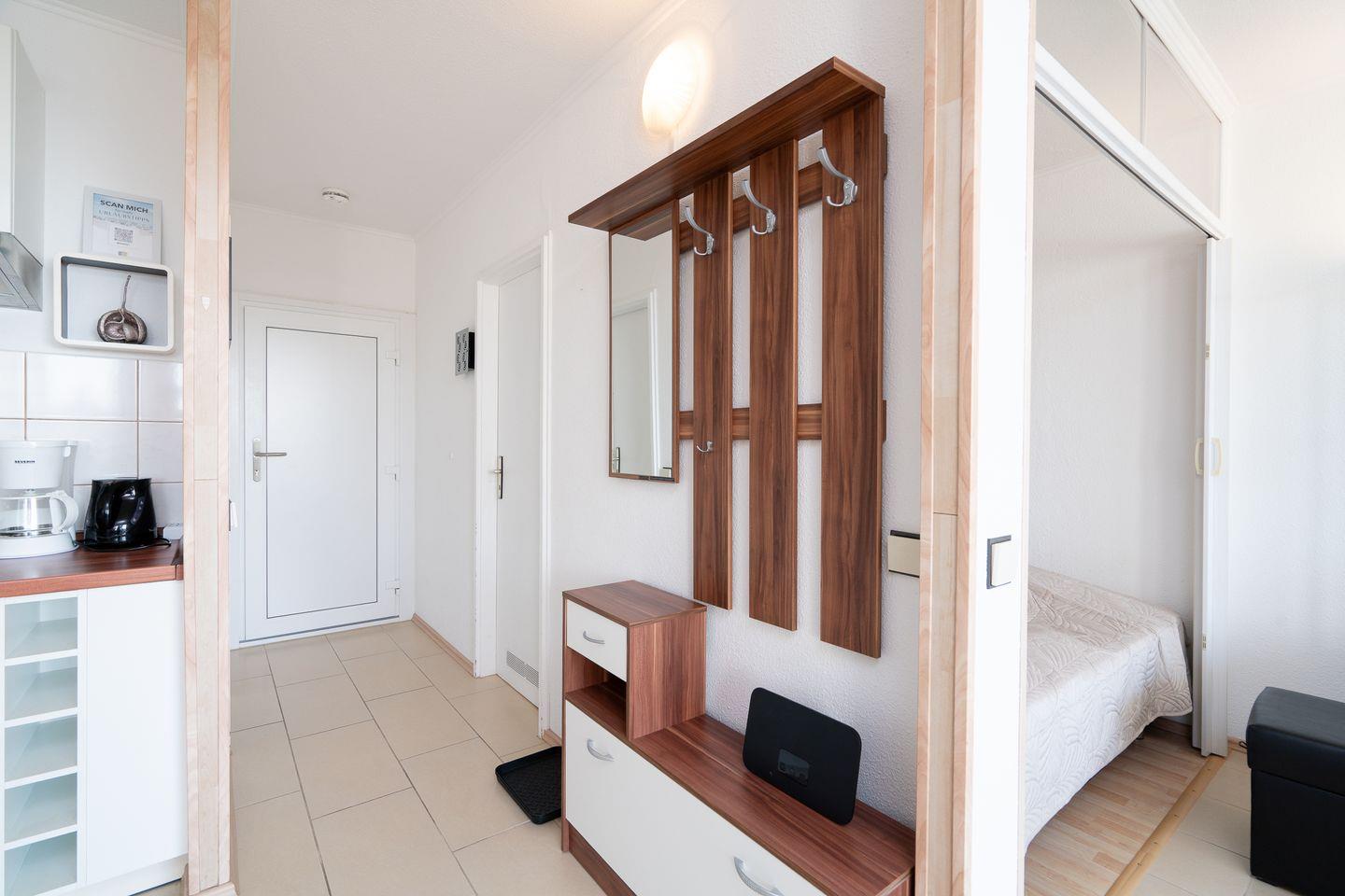 Die helle 1-Raum-Ferienwohnung liegt in der 4. Etage, vom Balkon blicken Sie über die Anlage hinweg in die Lübecker Bucht. Die Küche mit Backofen, Herd und Mikrowelle ist in den kombinierten Wohn-/Essbereich integriert. Der Schlafbereich mit Doppelbett lässt sich durch ein Schiebeelement vom Wohnbereich abtrennen. Hier steht zudem ein Schlafsofa, so dass die Wohnung für 4 Personen geeignet ist. Das hell geflieste Duschbad ist innenliegend. Zum Strand sind es wenige Fußschritte. WLAN inklusive.