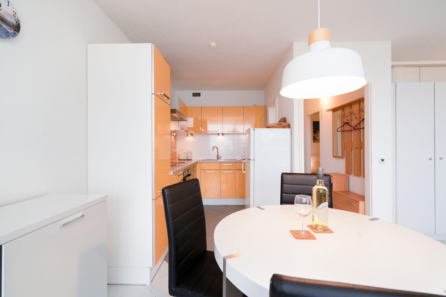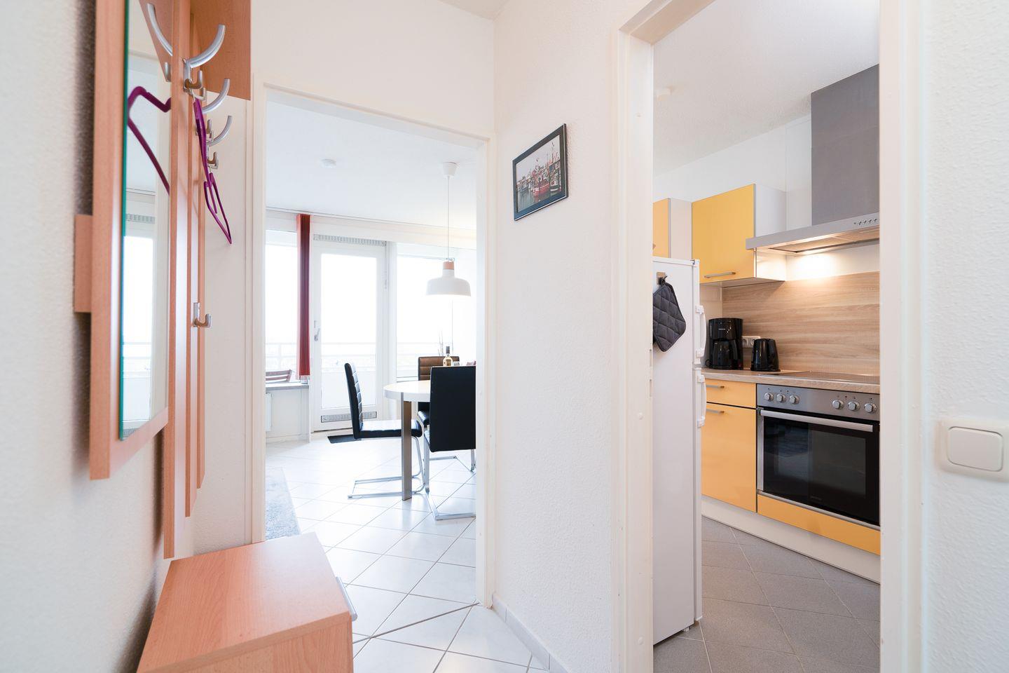 Die schöne 2-Raum-Ferienwohnung Nr. 693 liegt in der 4. Etage und hat vom Balkon einen schönen Blick in die Lübecker Bucht. Der hell geflieste und moderne Wohn- und Essbereich verfügt über eine offene Küche. Die Küche ist mit Spülmaschine, Backofen und Herd ausgestattet. Im Schlafraum steht ein Doppelbett, im Wohnbereich zudem ein Schlafsofa, so dass die Wohnung für vier Personen geeignet ist. Das moderne Duschbad ist innenliegend. Zum Strand sind es nur wenige Fußschritte. WLAN ist inklusive.