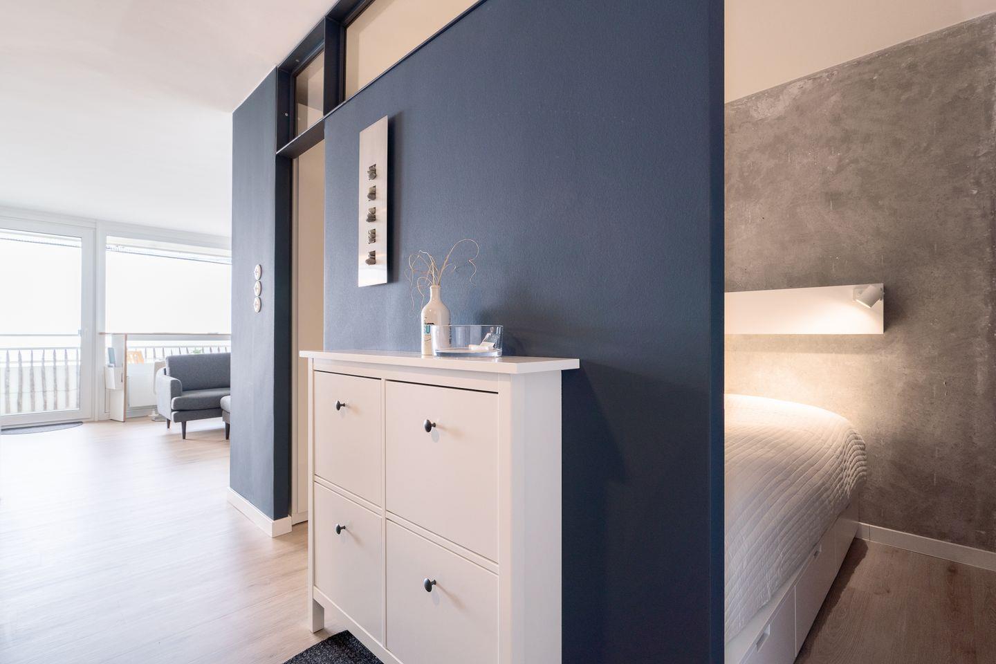 Diese schöne und besondere Wohnung lädt ein zu einem entspannten Urlaub zu zweit. Vom Balkon aus können Sie vom 8. Stock aus den herrlichen Blick auf die Ostsee genießen und die Seele baumeln lassen. Der gemütliche, kombinierte Wohn- und Essbereich verfügt über eine offene Küche, die mit Spülmaschine, Backofen und Herd ausgestattet ist. Im Schlafraum steht ein bequemes Doppelbett, in das durch Aussparungen in der Wand von beiden Seiten eingestiegen werden kann. Das moderne Bad hat eine Dusche. Zum Strand sind es nur wenige Fußschritte. PKW-Stellplatz inklusive.