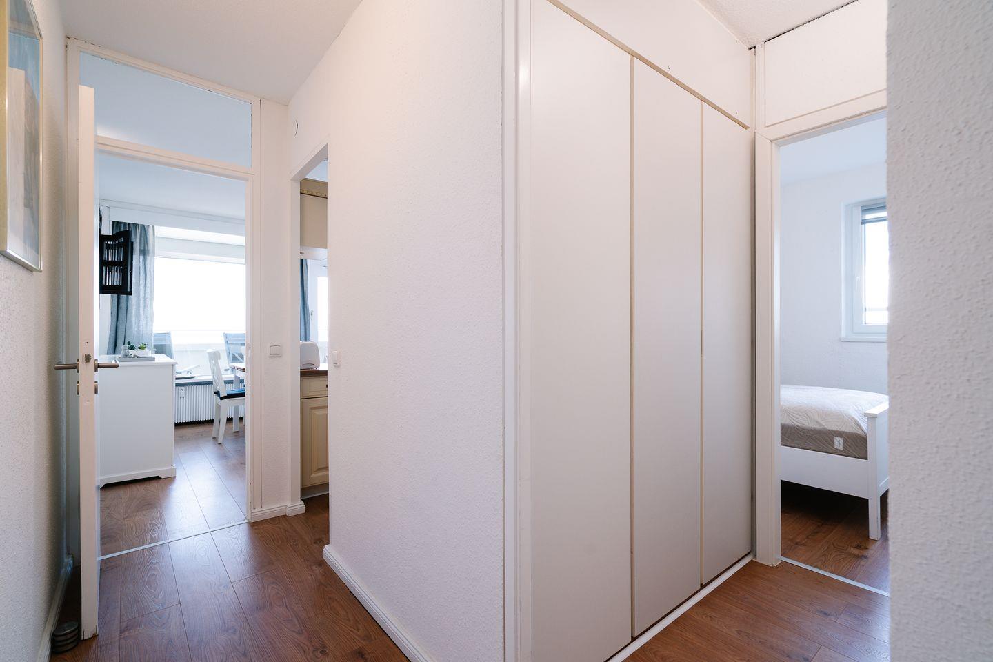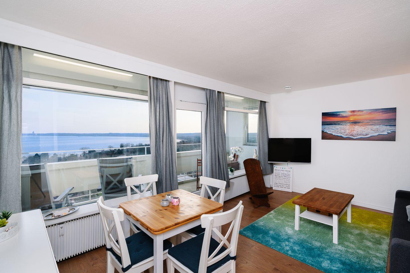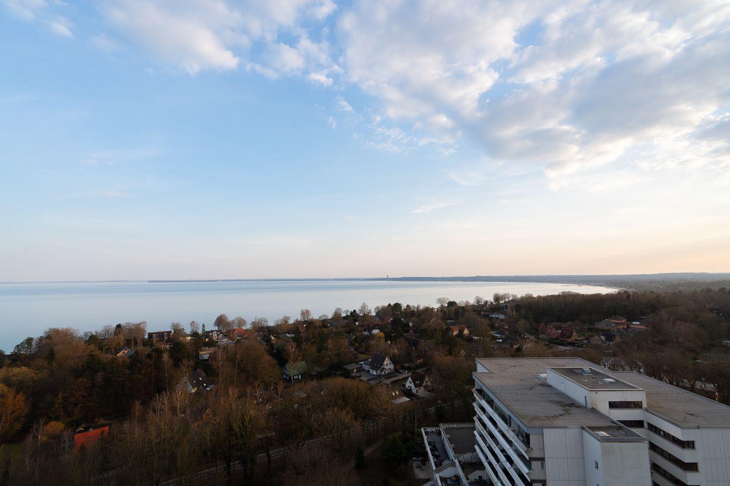 Die Ferienwohnung A15-07 liegt im 15. Stock der Panoramic-Anlage, ist für zwei Personen plus 2 Kinder geeignet und hat einen wunderbaren Weitblick auf die Lübecker Bucht. Der Wohn- und Essbereich verfügt über eine gemütliche Sofaecke. Die offene Küche ist mit Backofen und Herd ausgestattet. Im Schlafraum steht ein bequemes Doppelbett (140 x 200 cm). Das moderne Bad ist innenliegend. Zum Strand sind es nur wenige Gehminuten. WLAN inklusive.