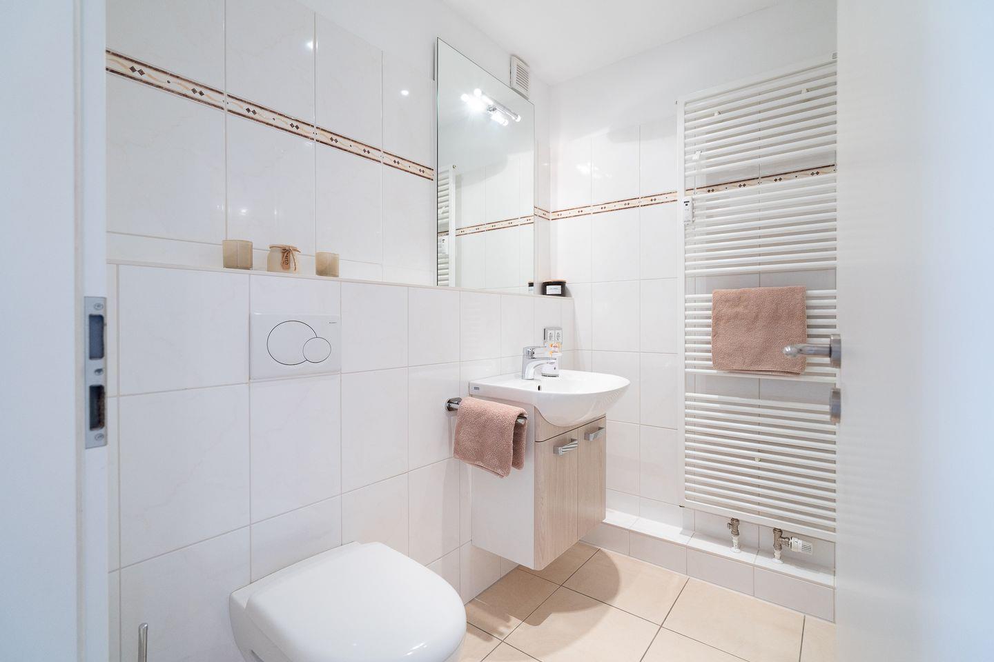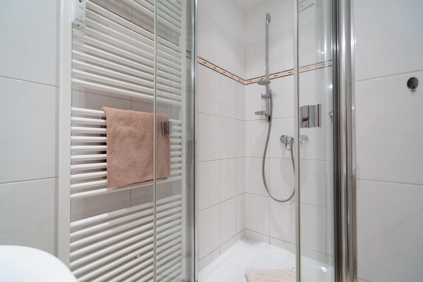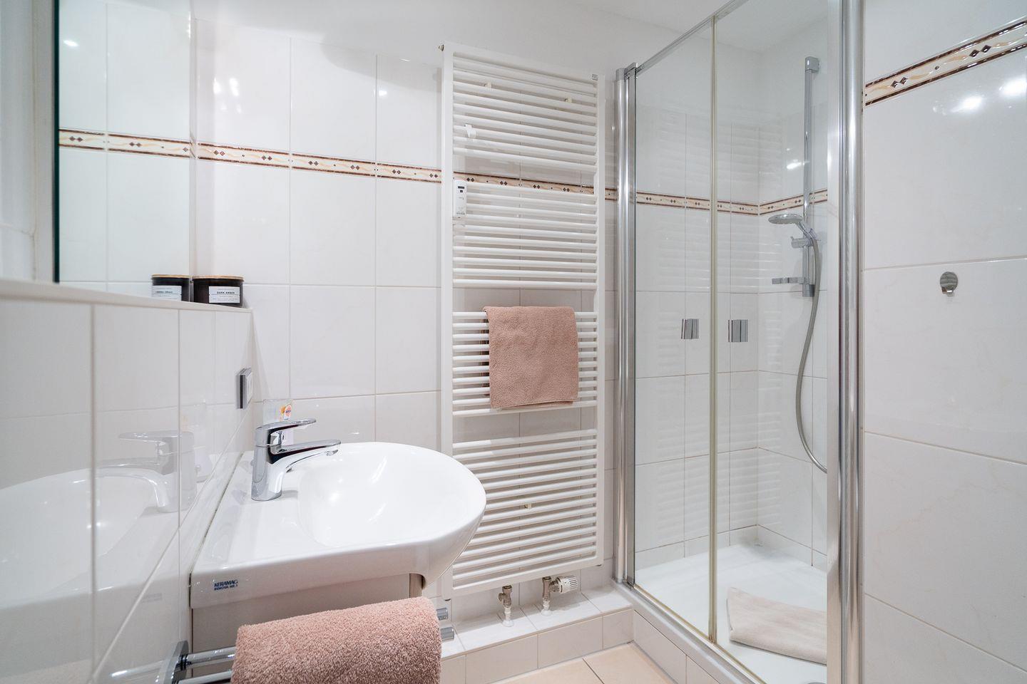 Die voll ausgestattete Küche lässt keine Wünsche offen: Sie finden hier einen Cerankochfeld-Herd, einen modernen Backofen, eine Spülmaschine, einen Kühlschrank mit Gefrierfach sowie eine Kaffeemaschine und einen Wasserkocher. Auch genügend Geschirr und Besteck ist vorhanden, sodass Sie sich wie zu Hause fühlen können. Der Essbereich ist bestens geeignet, um gemeinsam Mahlzeiten zu genießen, die Sie in der offenen Küche zubereiten können. Das Badezimmer ist mit einer Dusche ausgestattet, während ein Haartrockner für Ihren Komfort sorgt.