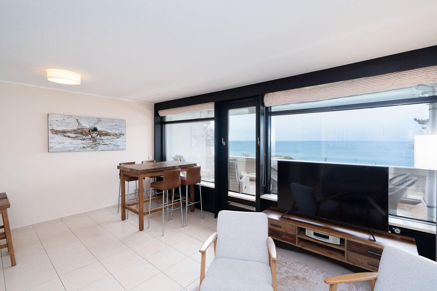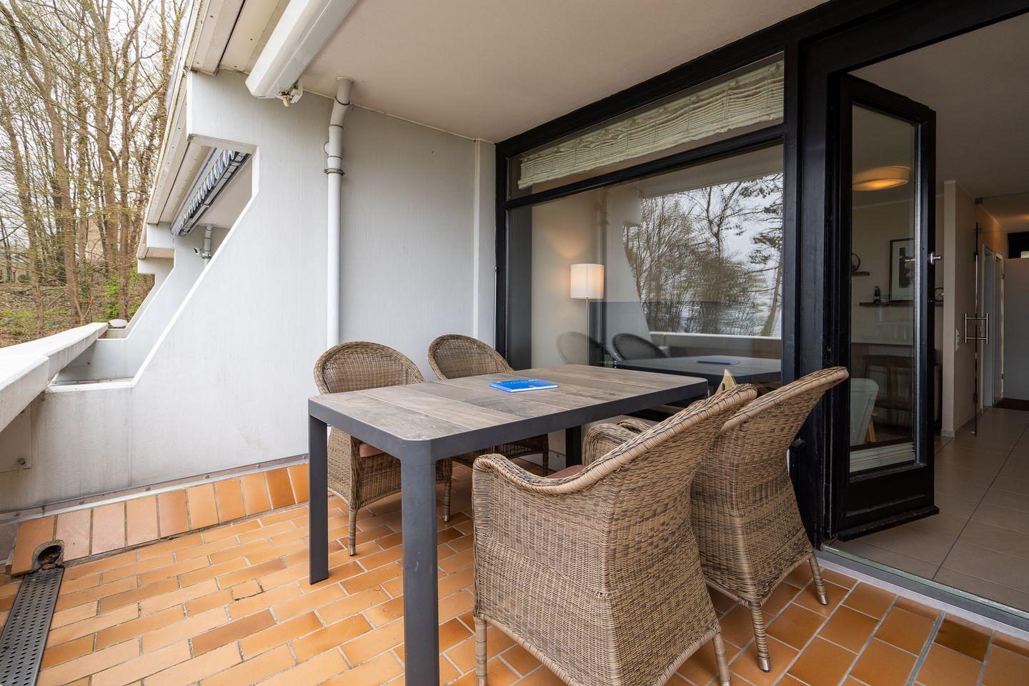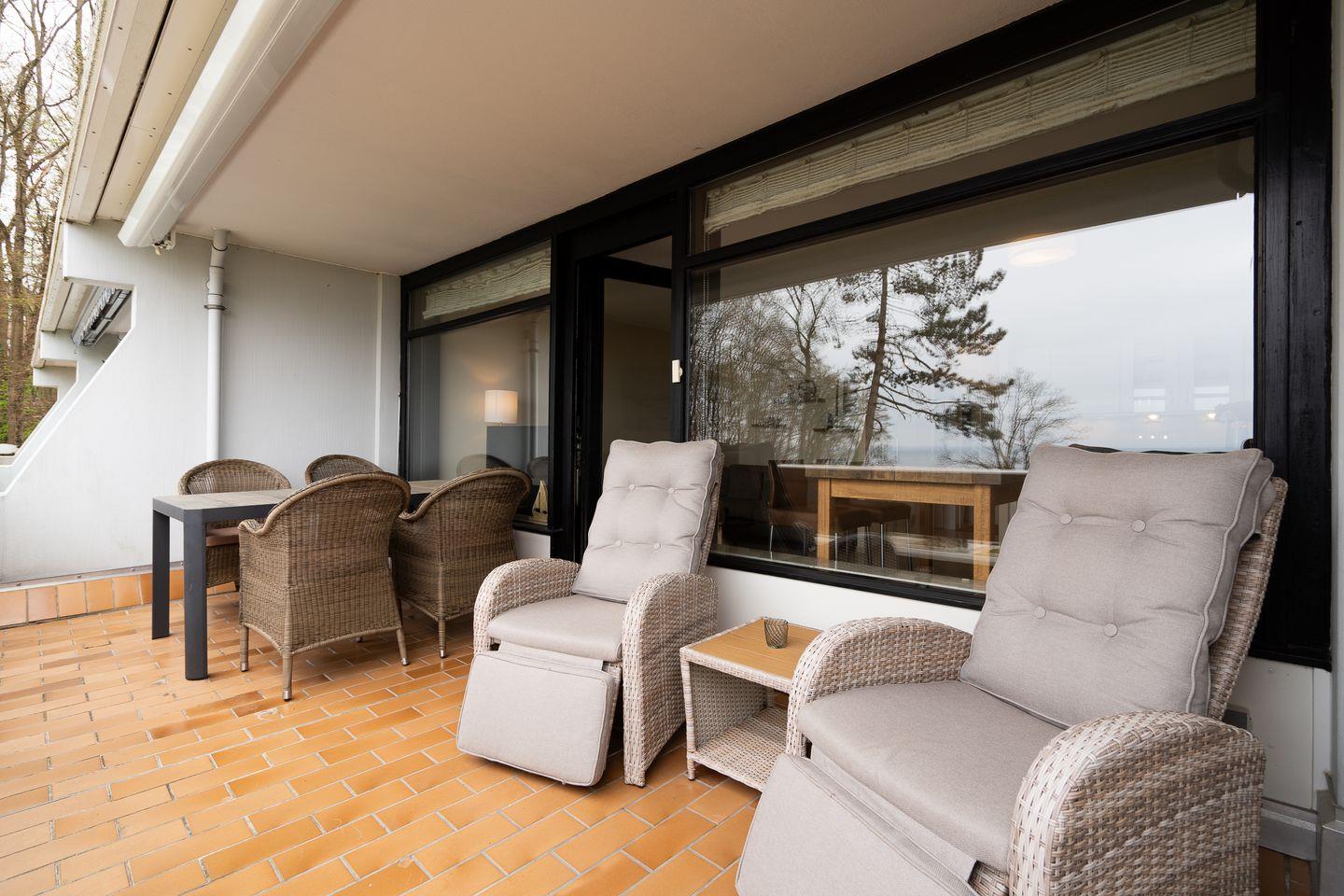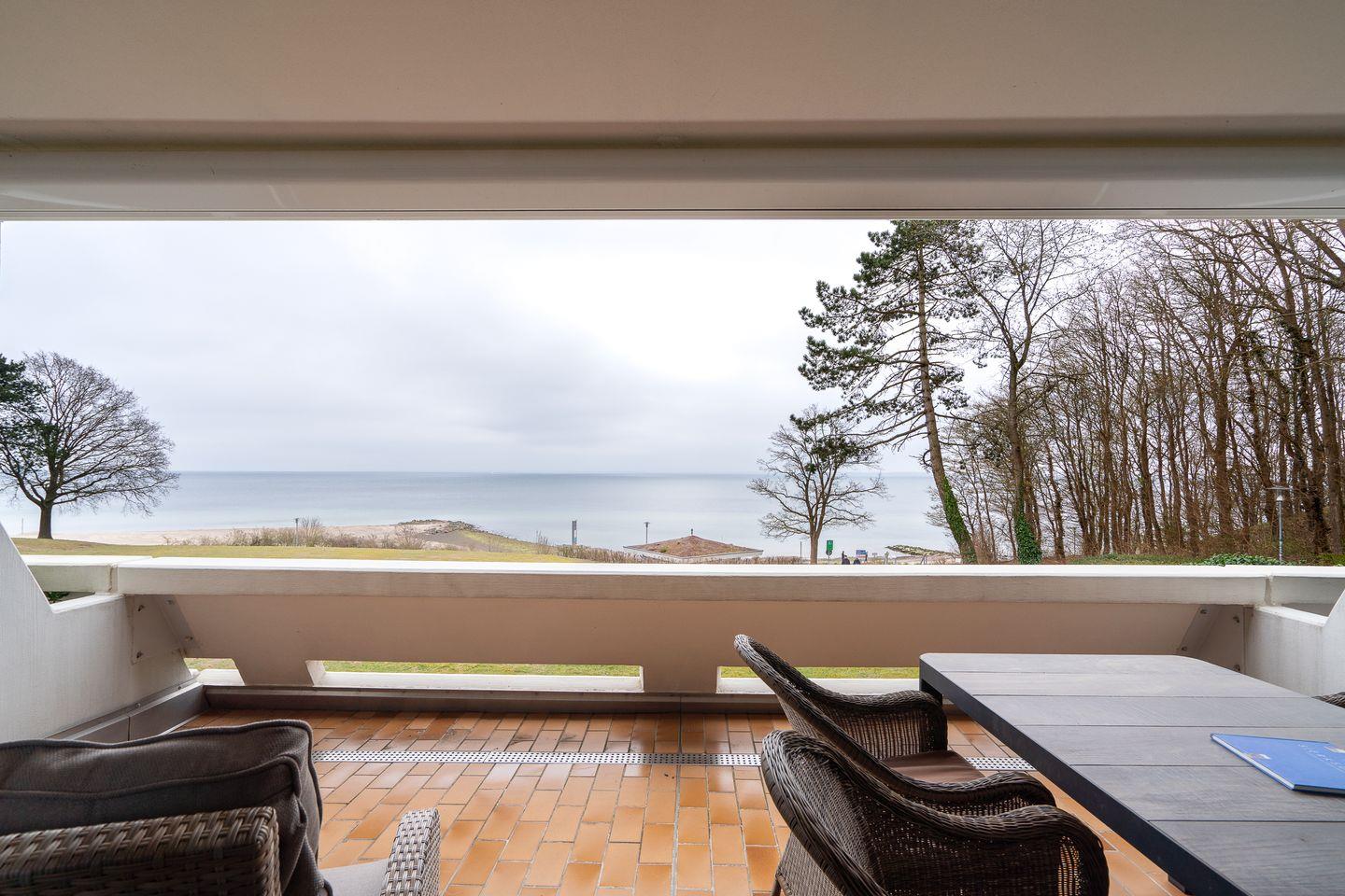 Ein besonders hervorzuhebendes Merkmal der Unterkunft ist der überdachte Balkon, von dem Sie einen wunderbaren Blick auf die Ostsee genießen können. Gartenmöbel und Sonnenschutz stehen Ihnen zur Verfügung, sodass Sie die frische Luft in vollen Zügen nutzen können. Die Terrassen- und Balkongelegenheit lädt Sie ein, die Sonne bei einem guten Buch oder einem Glas Wein zu genießen.