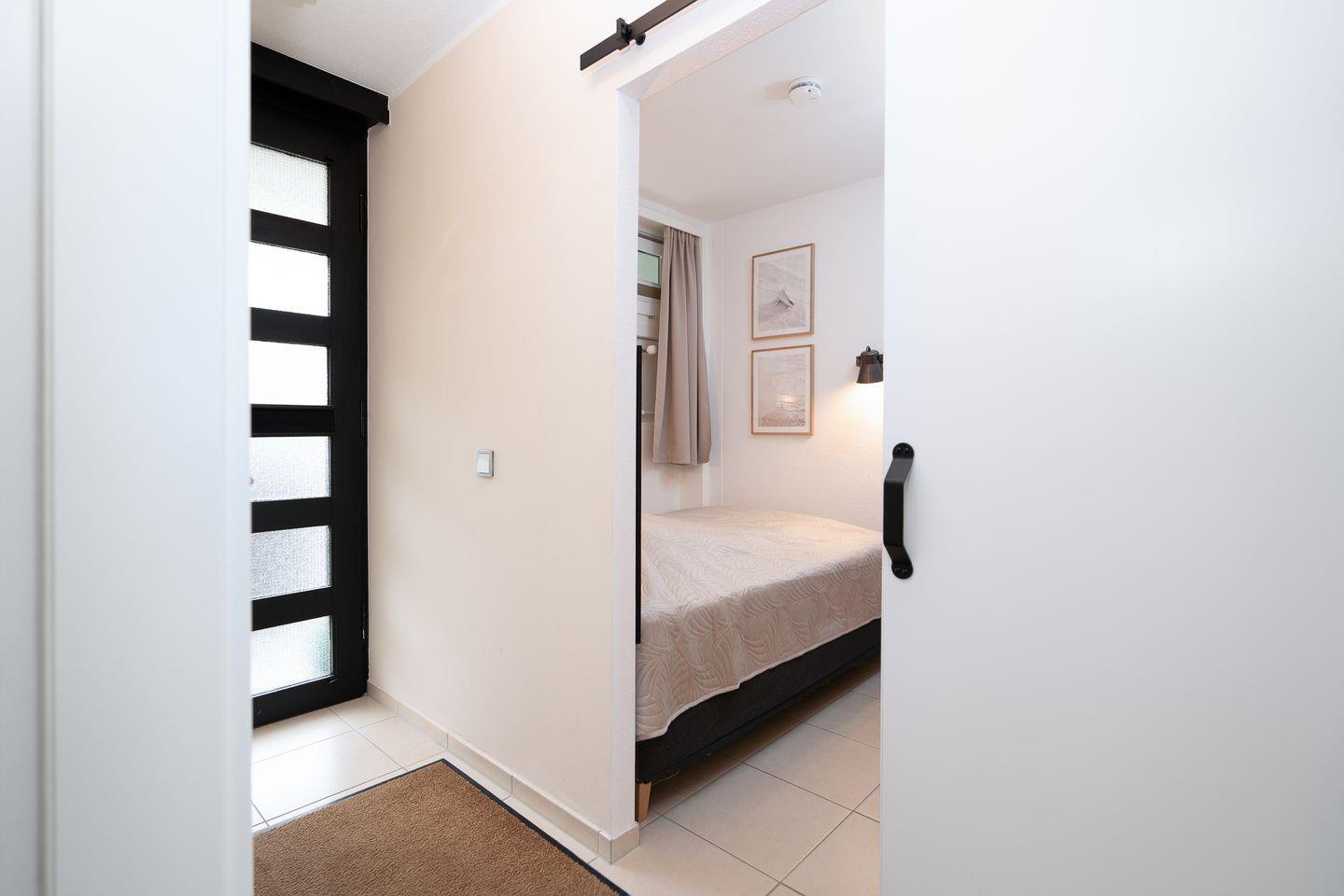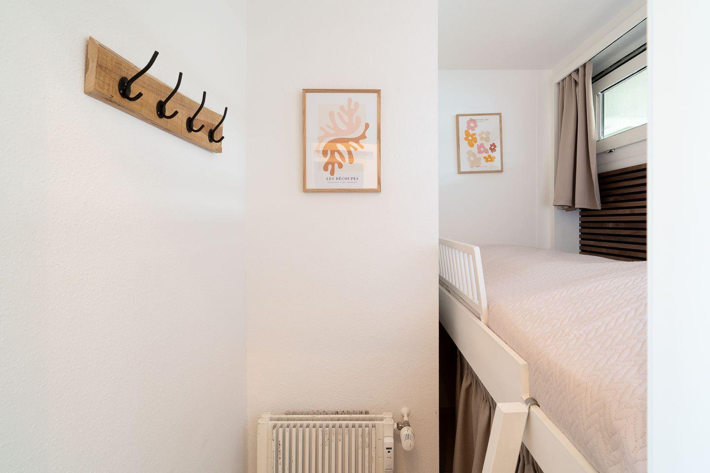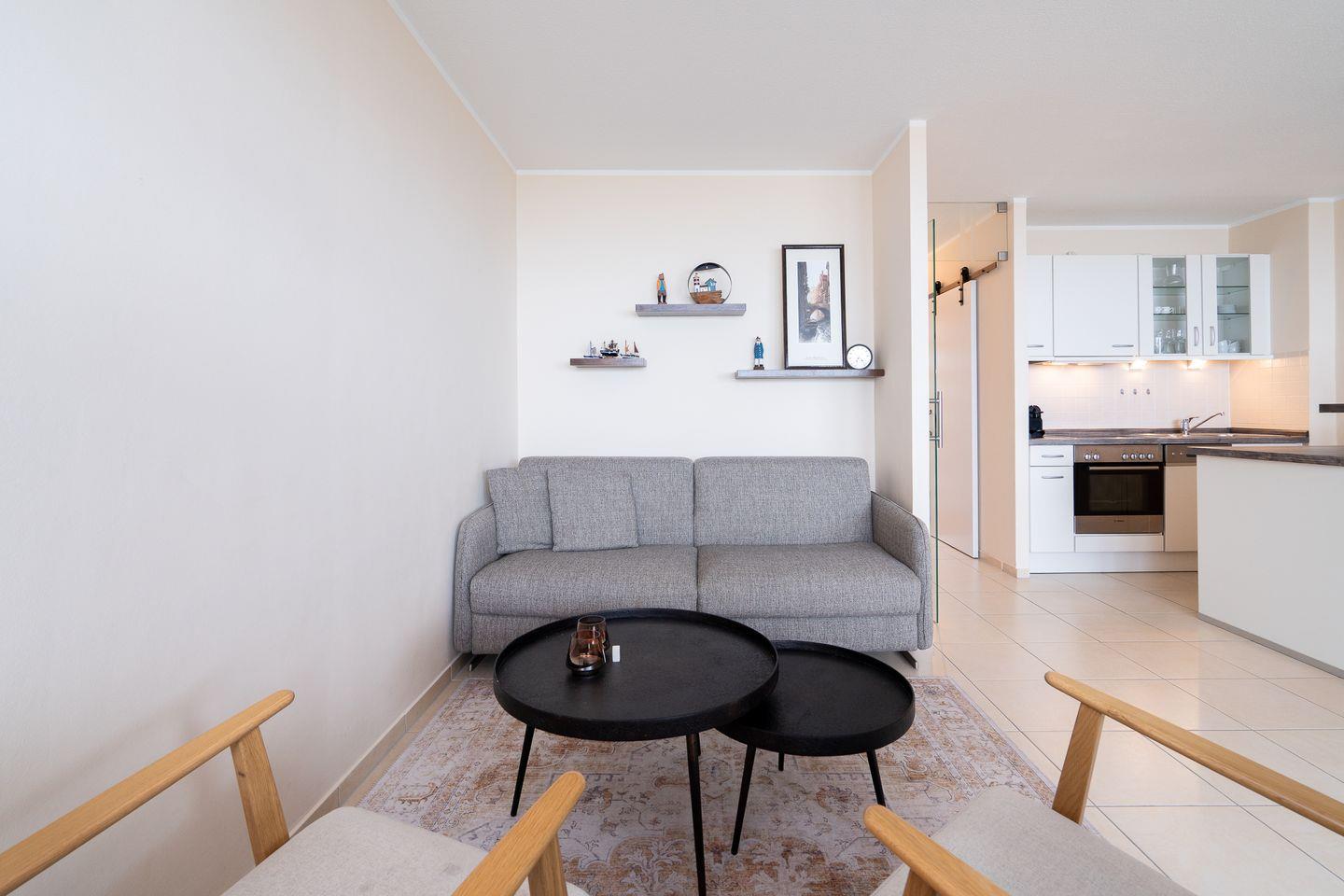 Mit einer Fläche von 50 m² bietet die Ferienwohnung ausreichend Platz für bis zu fünf Personen, inklusive zwei Schlafzimmer. Hier können Sie sich nach einem aufregenden Tag am Strand zurückziehen und die wohltuende Ruhe genießen. Im ersten Schlafzimmer steht ein bequemes Doppelbett (150 x 190 cm), im zweiten Schlafzimmer ein Hochbett (je 90 x 200 cm) für eine Person. Das Wohnzimmer mit einer gemütlichen Sofaecke ist ideal, um entspannte Abende zu verbringen, während der Fernseher für Unterhaltung sorgt. Auf dem Sofa mit Schlaffunktion (160 x 200 cm) ist Platz für zwei weitere Personen.
