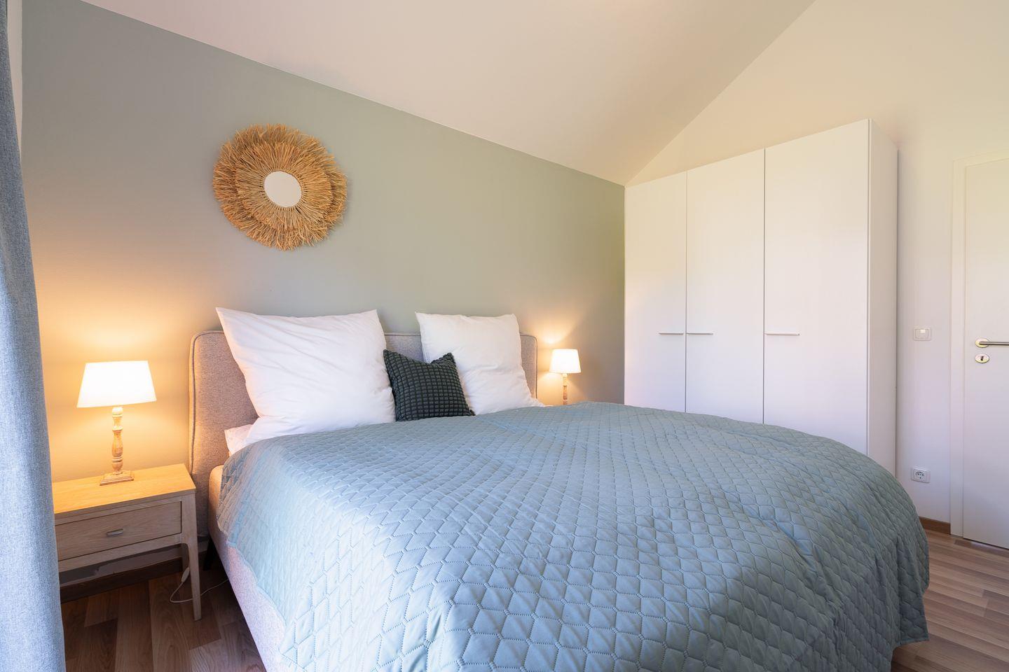Im Inneren erwarten Sie drei gut geschnittene Zimmer mit 5 Schlafplätzen, darunter zwei separate Schlafzimmer und ein großzügiger Wohn- und Essbereich. Im ersten Schlafzimmer steht ein bequemes Doppelbett (2x 90 x 200 cm). Im zweiten Schlafzimmer stehen jeweils Einzelbetten (je 80 x 200 cm). Highlight des Zimmers ist der Schlafalkoven, zu dem Sie über eine schmale Treppe gelangen. Für den Komfort der kleinen Gäste stehen ein Babybett und ein Hochstuhl zur Verfügung. Sämtliche Fenster sind mit Sichtschutz versehen, sodass Sie jederzeit Privatsphäre und ein angenehmes Wohnklima genießen.