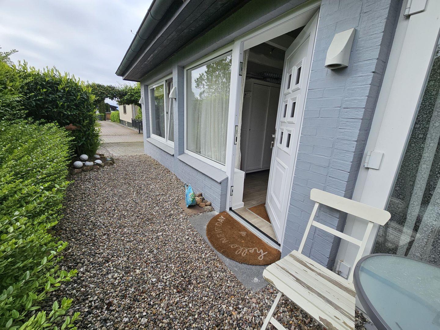 Die kleine Terrasse lädt zum Frühstücken, Grillen oder einfach nur zum Verweilen ein. Ihren PKW können Sie mit auf dem kleinen Grundstück abstellen.