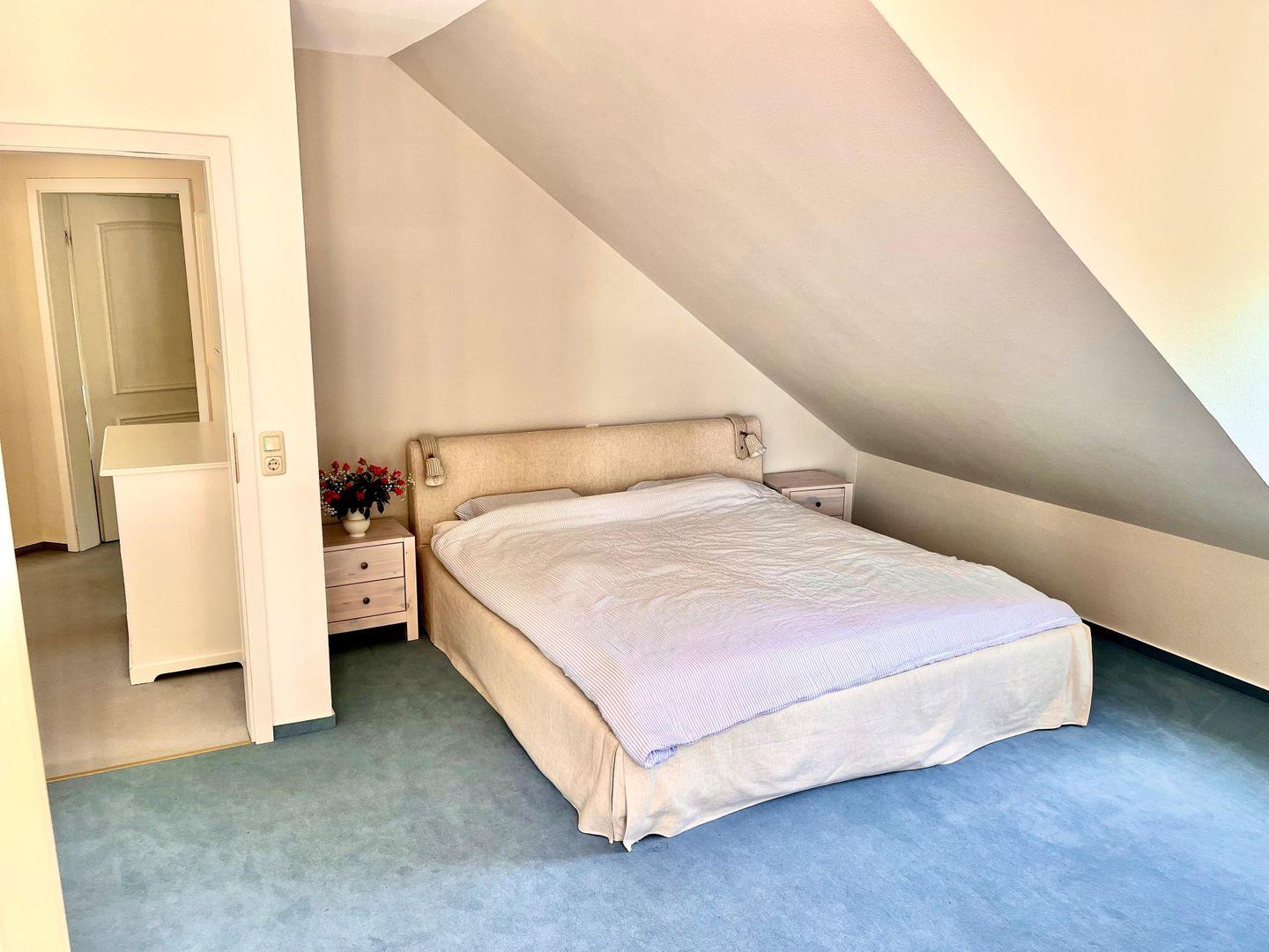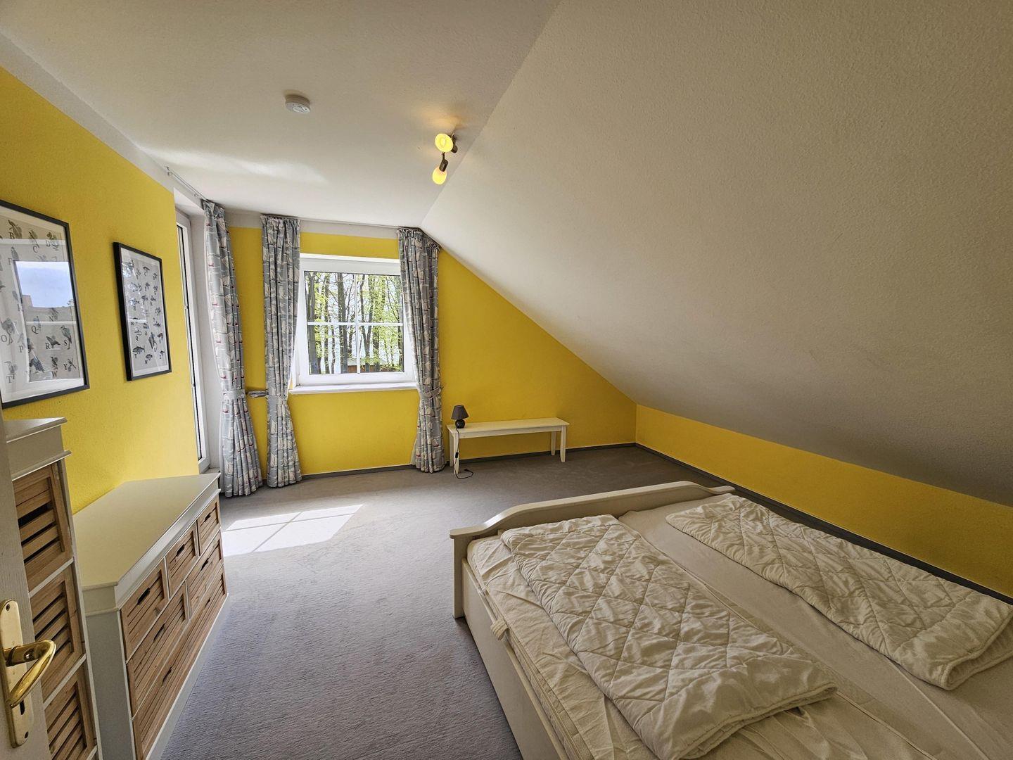 Das dritte Schlafzimmer verfügt über ein Bett in der Größe 2,00 m x 1,40 m.