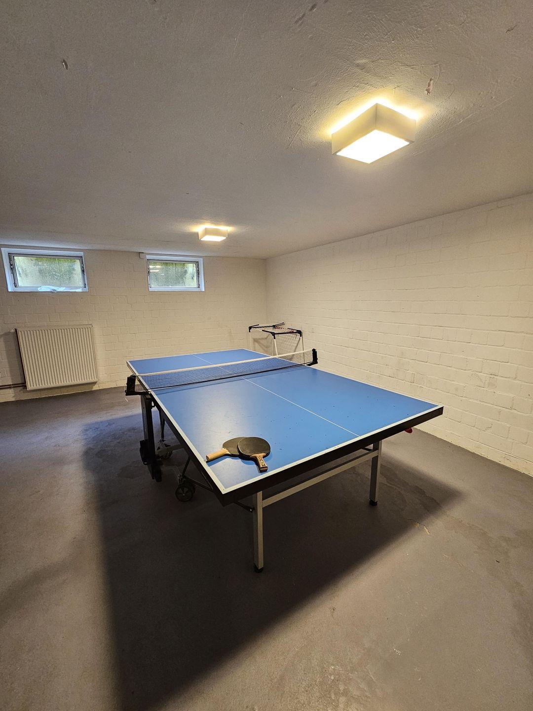 Im Keller befinden sich Waschmaschine, Sauna und eine Tischtennisplatte.