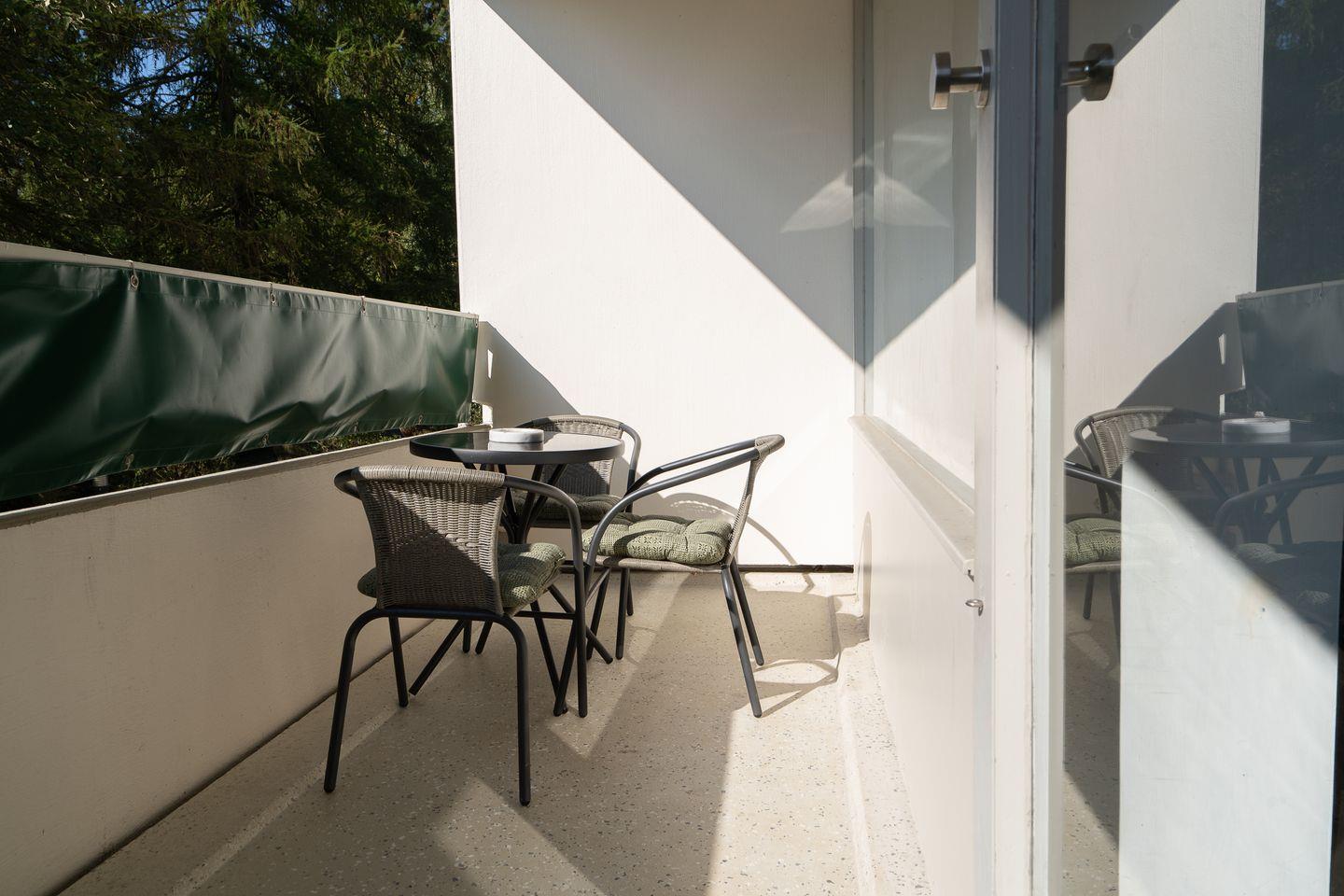 Das 1-Zimmer-Apartment umfasst 33 m² Wohnfläche und bietet bis zu vier Schlafmöglichkeiten. Der offen gestaltete Küchenbereich ist zum Wohnzimmer hin offen und mit Herd, Backofen, Kühlschrank mit Gefrierfach, Kaffeemaschine, Wasserkocher und Toaster ausgestattet. Ein bequemes Doppelbett (160 cm x 200 cm) steht mit im Wohnbereich, das Sofa mit Schlaffunktion bietet Platz für zwei weitere Personen. Für Ihre Unterhaltung und Kommunikation sorgen ein TV, Radio und kostenfreies WLAN. Ein überdachter Balkon lädt dazu ein, die frische Ostseeluft zu genießen und bei eingeschränktem Meerblick zu entspannen – geschützt vor Sonne oder leichtem Regen.