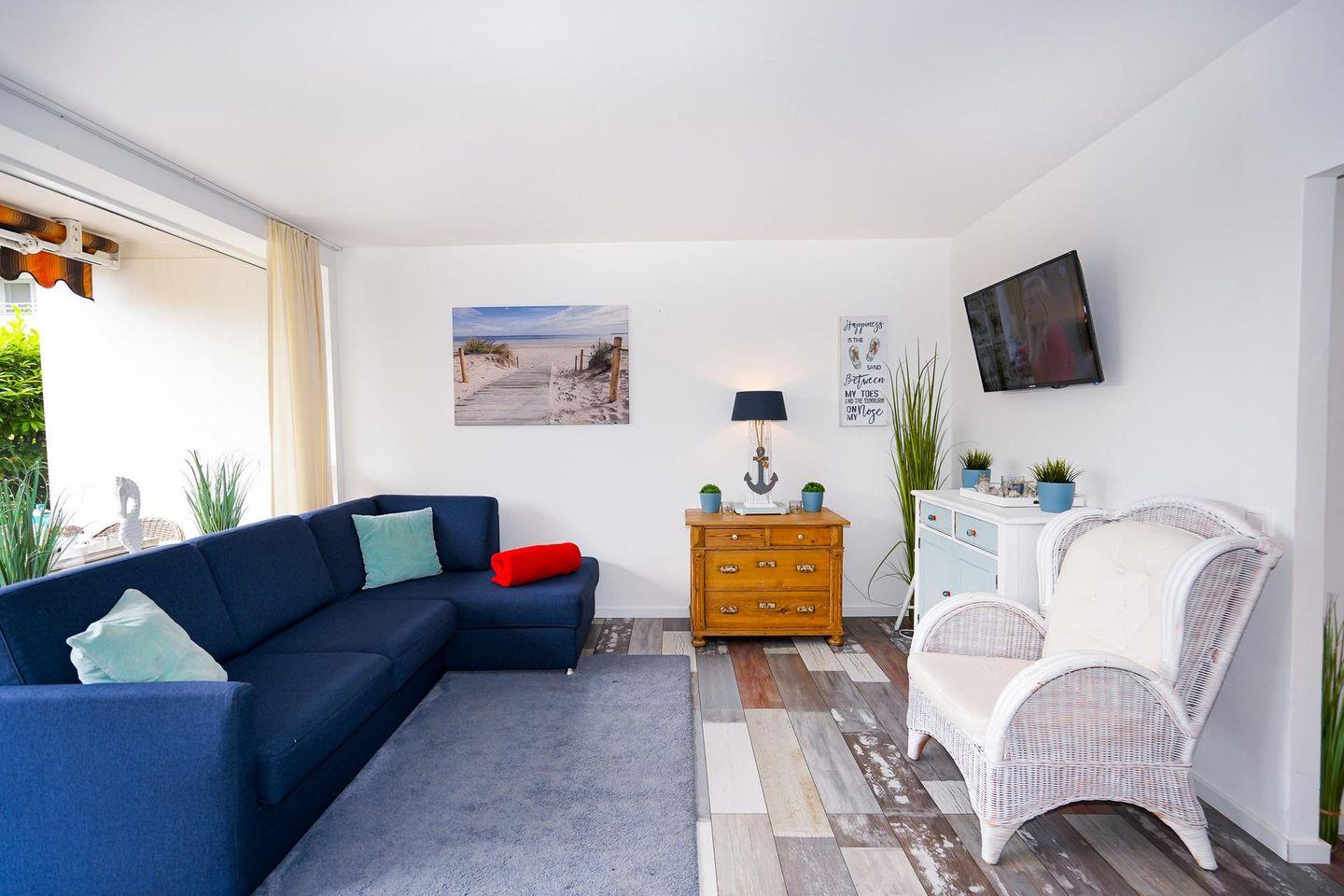 Die im Ferienpark Sierksdorf im Souterrain gelegene Ferienwohnung bietet Platz für bis zu 4 Pers. Eine bequeme Schlafcouch und ein großer Flachbildfernseher befinden sich im hellen und geräumigen Wohnzimmer. Das ruhig gelegene Schlafzimmer ist mit einem Schlafsofa ausgestattet. Die offene Küche, die sich harmonisch in den Wohnraum integriert, enthält alle Kochutensilien für die Zubereitung eigener Mahlzeiten inklusive einer Geschirrspülmaschine. Speisen können im ansprechenden Essbereich des Wohnzimmers angerichtet werden. Das Badezimmer ist mit einer Dusche versehen. Die Terrasse bietet genügend Platz um in der Sonne zu frühstücken.