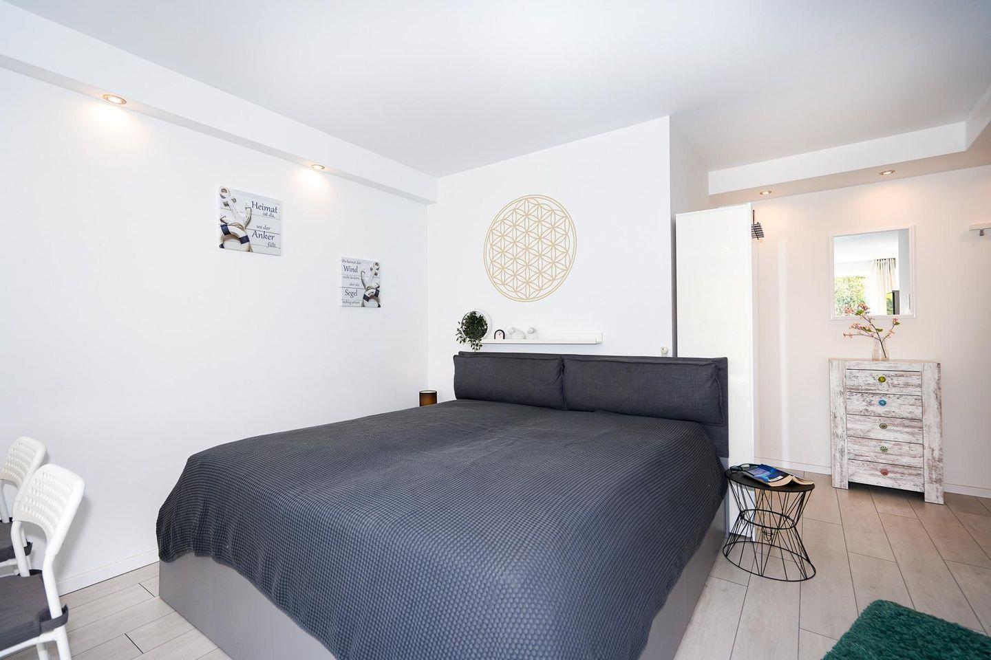 Der helle Wohnraum ist mit einer bequemen Polsterlandschaft sowie einem ansprechenden Essbereich und hochwertigen Echtholzmöbeln eingerichtet. In der Einbauküche sind alle Geräte und Kochutensilien enthalten, um auch mal eigene Gerichte zuzubereiten. Im Wohn-/Schlafbereich können Sie auf dem bequemen Boxspringbett (1,80 x 2,00) entspannen und ausruhen. Das geräumige Bad verfügt über eine Dusche. Ein großer Flachbildfernseher im Wohnzimmer zählt natürlich ebenso zur Einrichtung des Apartments. Der ca. 14 qm große Balkon verwöhnt mit einer Aussicht ins Grüne. Hunde sind in der Ferienwohnung stets gern gesehene Gäste (gegen Gebühr).