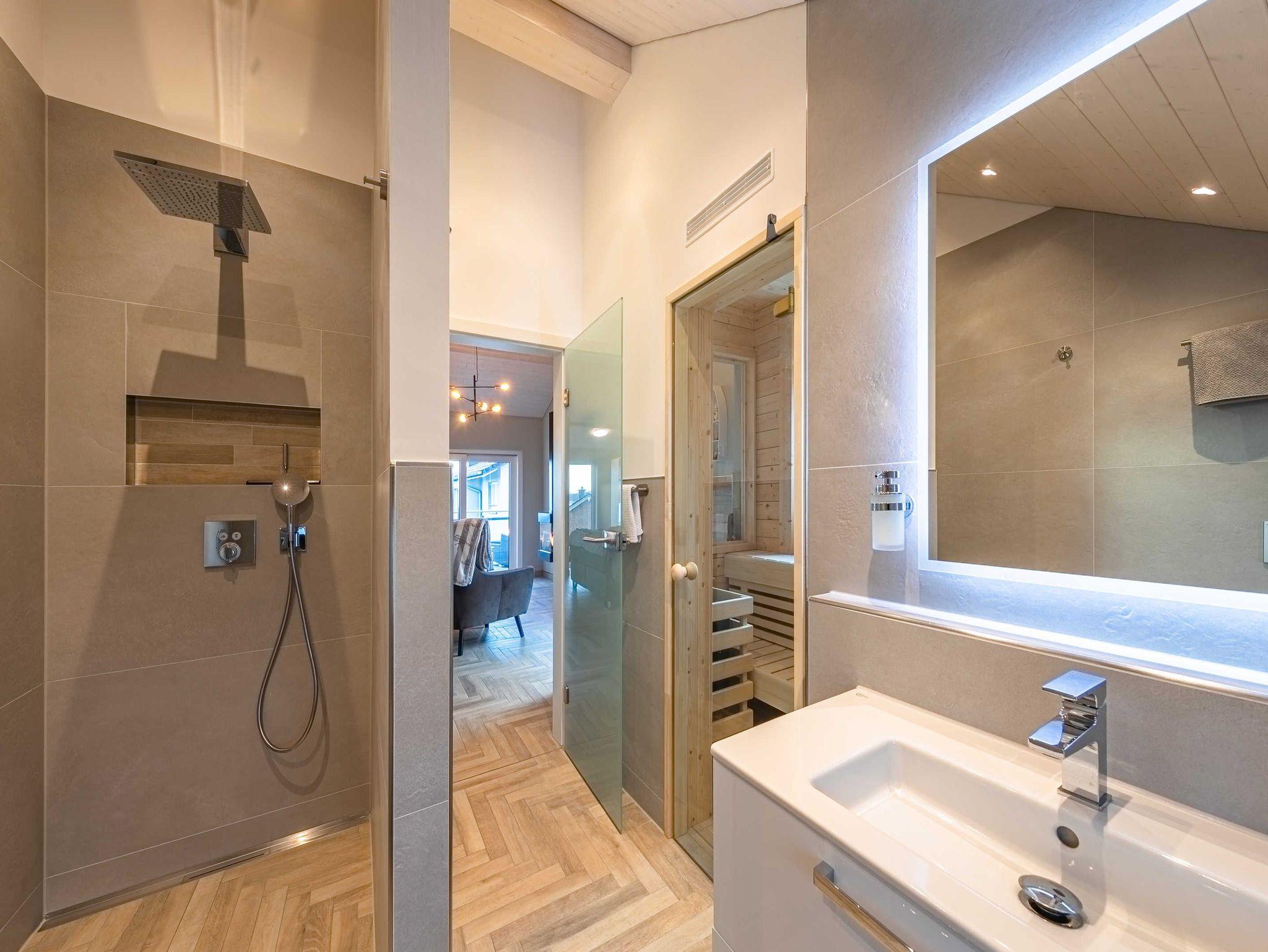 Wohnungen verfügen jeweils über eine eigene Sauna und einen Gaskamin. Von den