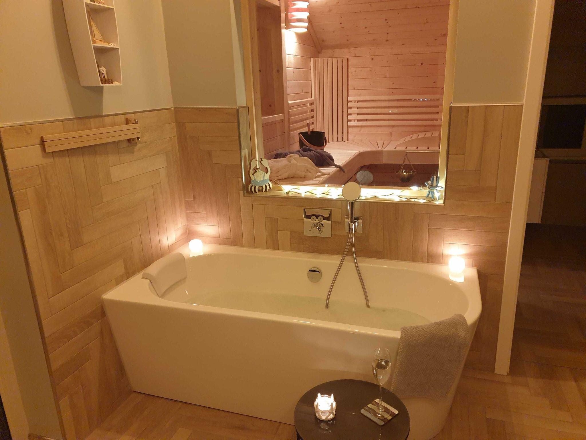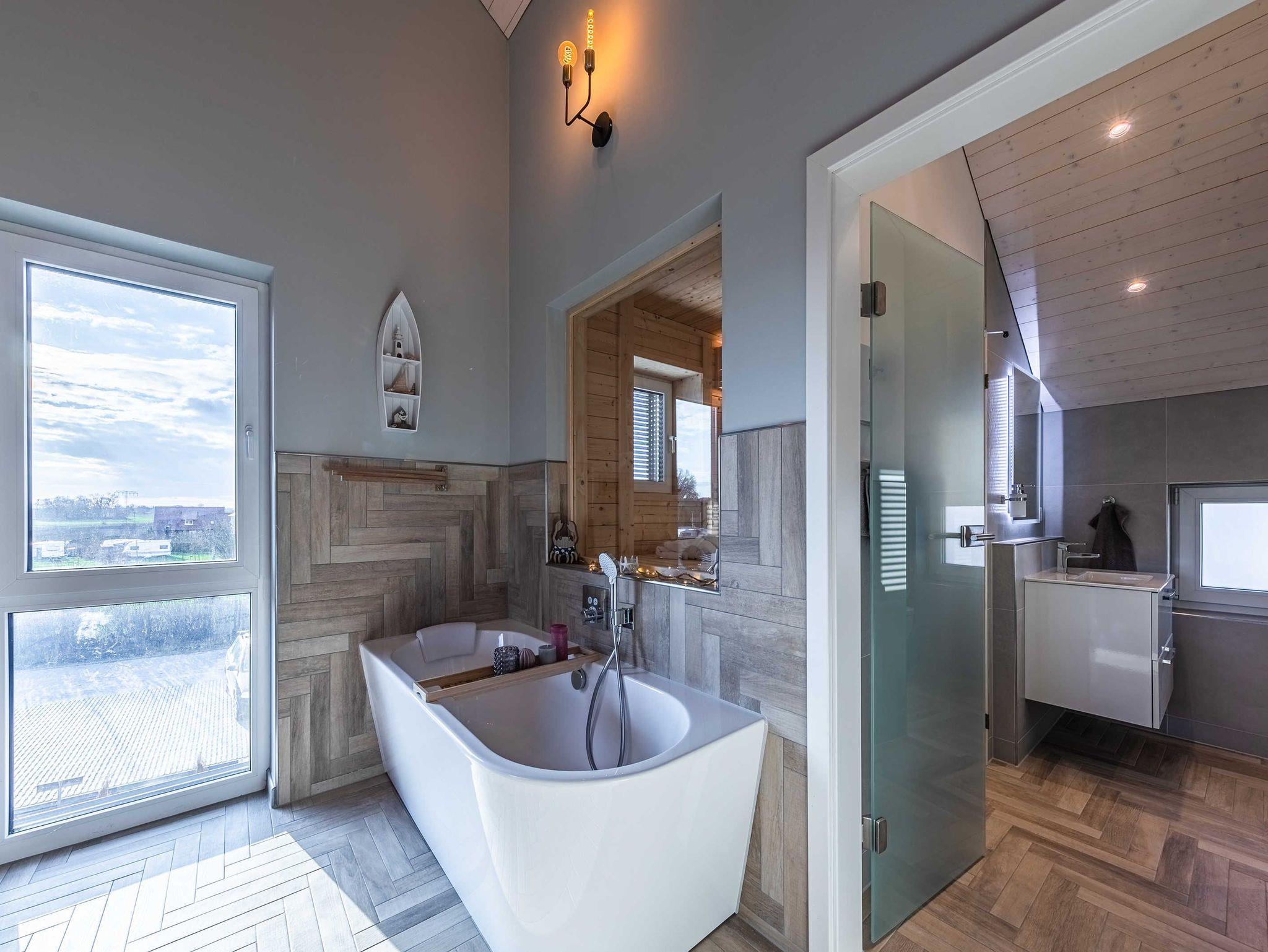 Erleben Sie Luxus und ein sicheres Gefühl in der eigenen Sauna, behagliche Wärme am modernen Gaskamin oder ein Entspannungsbad in der im Wohnraum integrierten Badewanne. Ob einfach nur Musik hören, einen Film genießen oder direkt aus der Badewanne in die Natur und auf den See schauen.